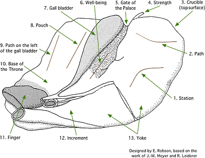 메기도에서 출토된 인공 간 (1300-1150 BCE). 이것은 간을 통한 점술이 팔레스타인에도 행해졌음을 암시한다.