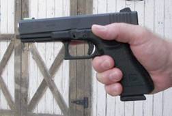 - 첫번째, 권총 손잡이(Grip 그립)의 뒷부분을 오른손 검지손가락과 엄지손가락 사이의 면에 밀착시킵니다.