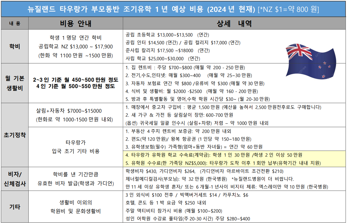 하나하나 정확히 2024기준으로 계산해봤습니다!! 뉴질랜드 유학 비용!! 뉴질랜드 조기유학 비용!! [타우랑가 유학원]