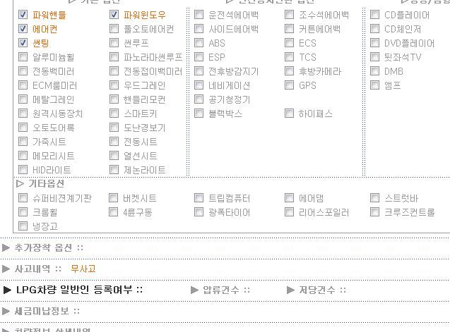 | 파워윈도우 | 파워핸들 | 광폭타이어 | 자동도어잠금장치 |