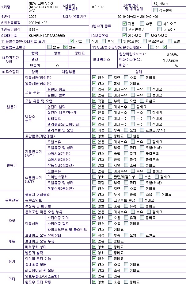 차 종==☞ 뉴그랜저xg