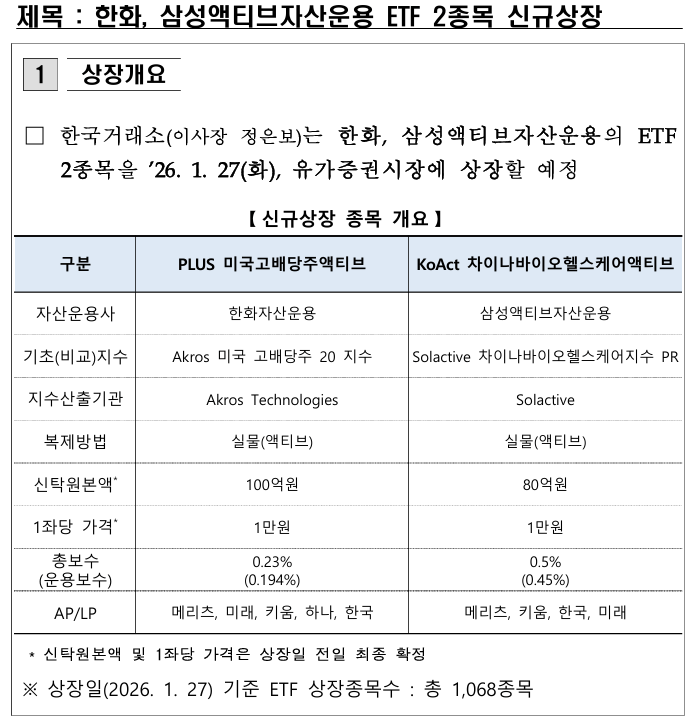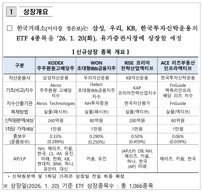 참고) 저번에 소개해 드렸던 1/20 신규 상장 ETF