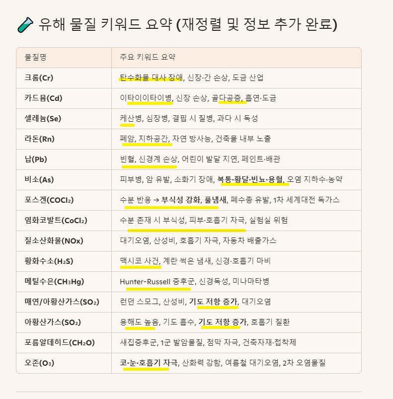 -유해물질은 제가 정리한것은 gtp에 요청했더니 더 추가해서 정리해줌