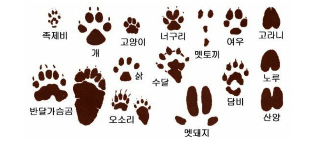 도식화된 사진과 실제 고라니발굽 사진입니다.