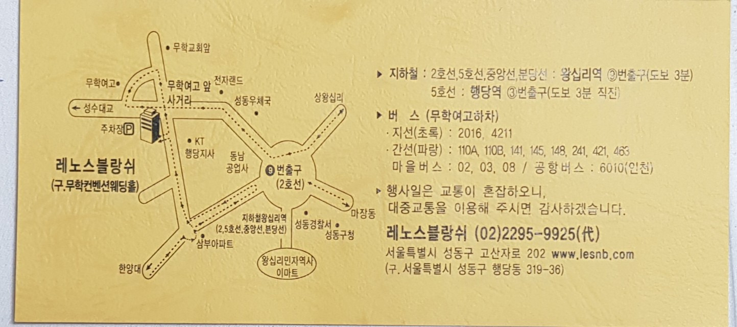 장소 : 레노스를랑쉬(구무학예식장)