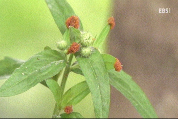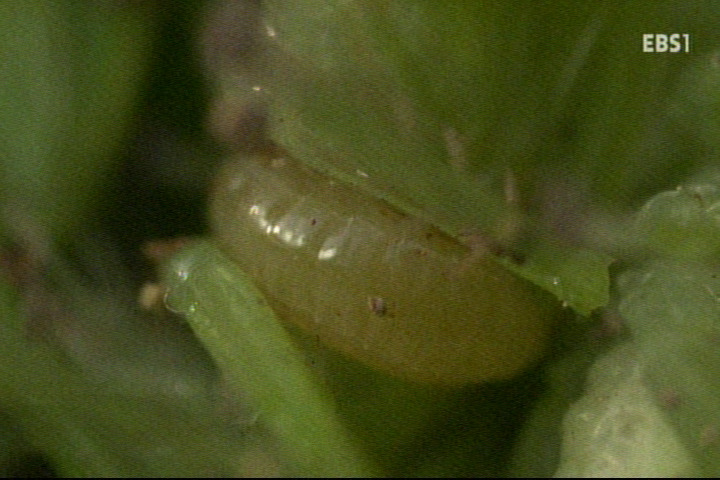 식물 줄기 끝부분에 꽃처럼 흉내를 내면서 - 남가뢰 애벌레 ...