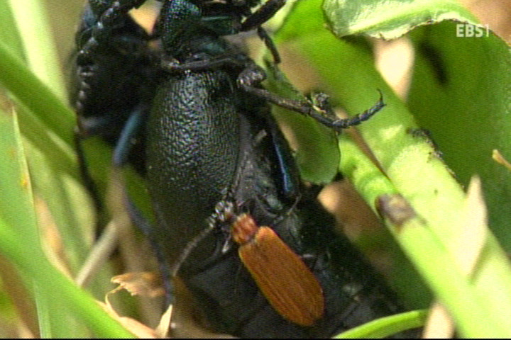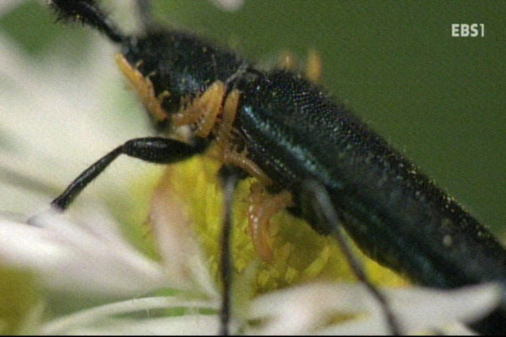 남가뢰 애벌레와 꽃가루가 뒤섞이면서 초원하늘소 몸에 엉기고 ...