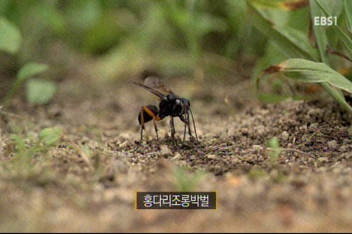 홍다리조롱박벌 은신처로 들어가는 기생파리 ...