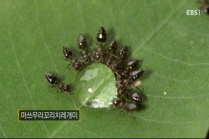 마쓰무라꼬리치레개미와 애벌레 유충 ...
