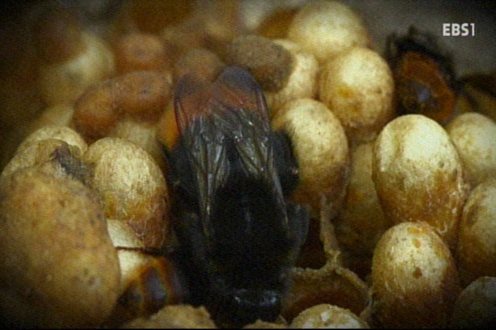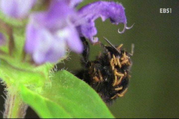 호박벌 몸에 엉기는 남가뢰 애벌레 ...