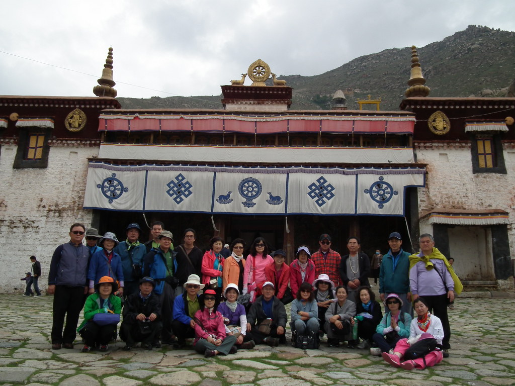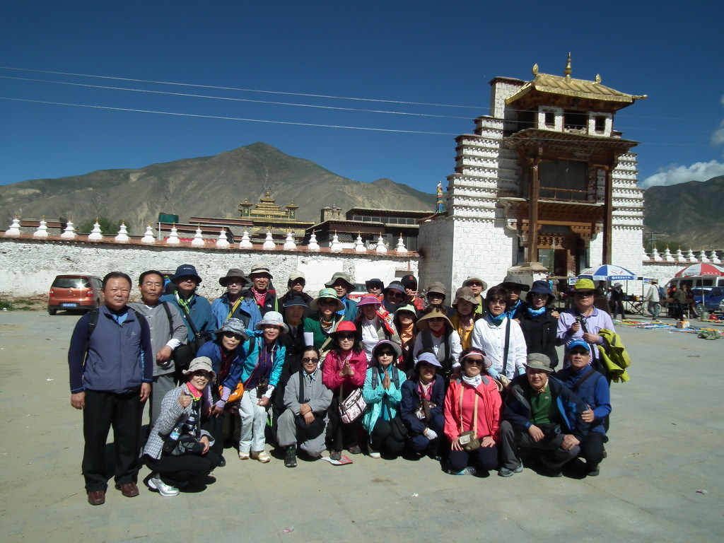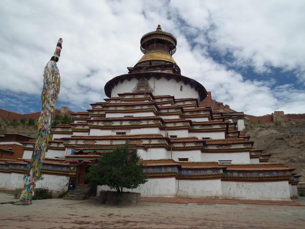 평화의 탑 앞에서 예불을 올렸다. 이 사원은 총카파의 제자 겐덴드루프가 1447년 세웠다.