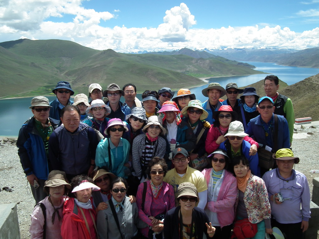 얌드록초 호숫가에서 잠시 휴식을 취하는데, 광주에서 오신 곽금순 법우님 일행은 호숫물에