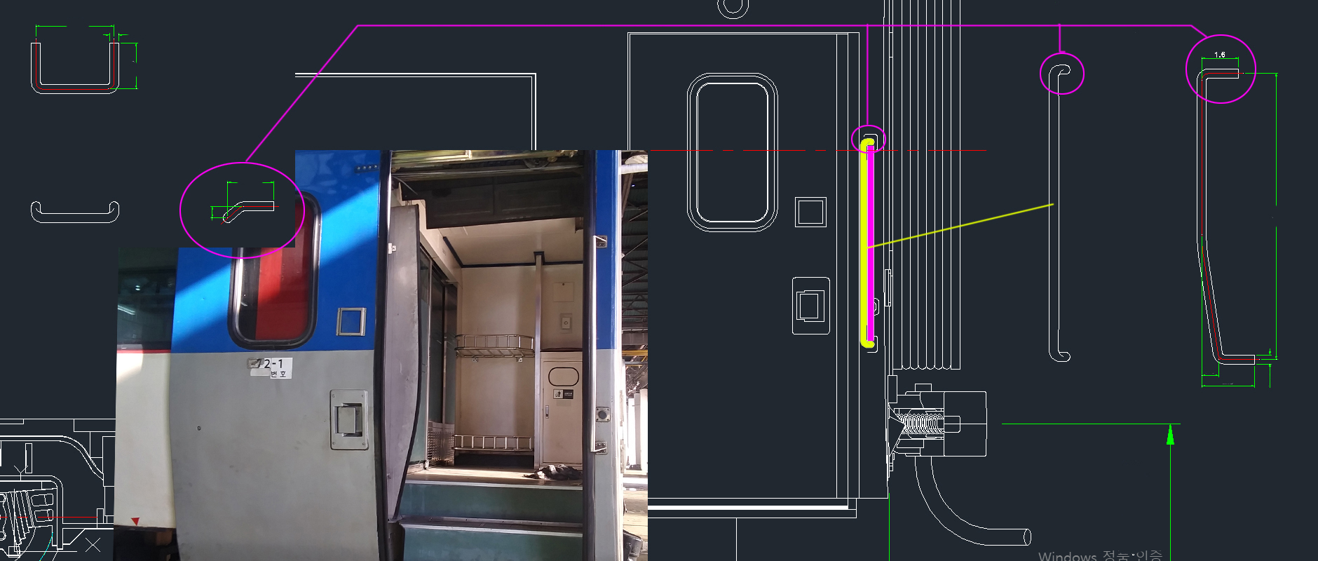 실차에는 이렇게 가로바가 들어가는데 객차를 세워놓고 보면 이부분이 살짝 보여서...