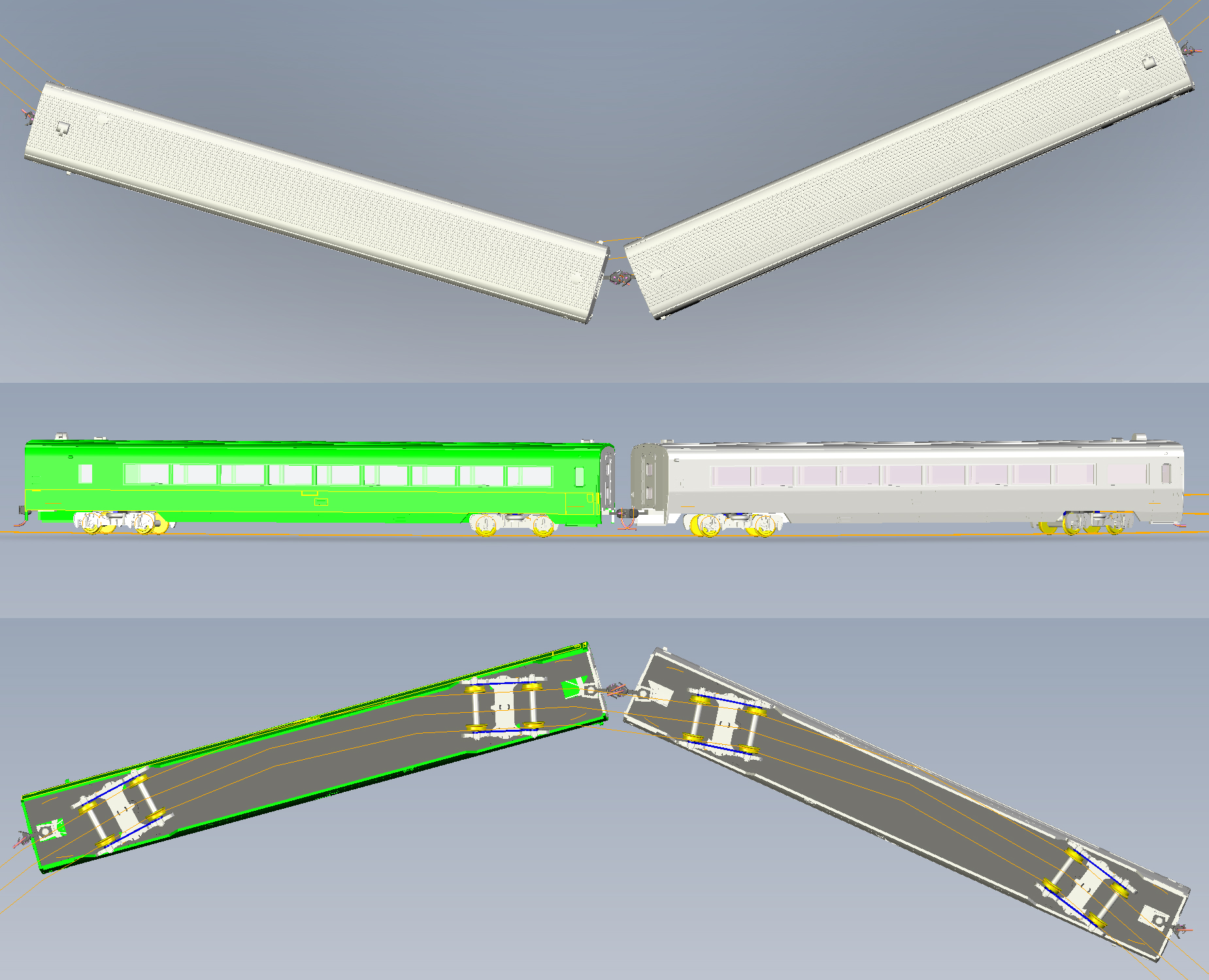 현재는 객차간 가벼운상태에서는 거의 붙어있지만 무거운 차량이 견인되면 객차간 벌어지도록 설계가 되어있습니다.