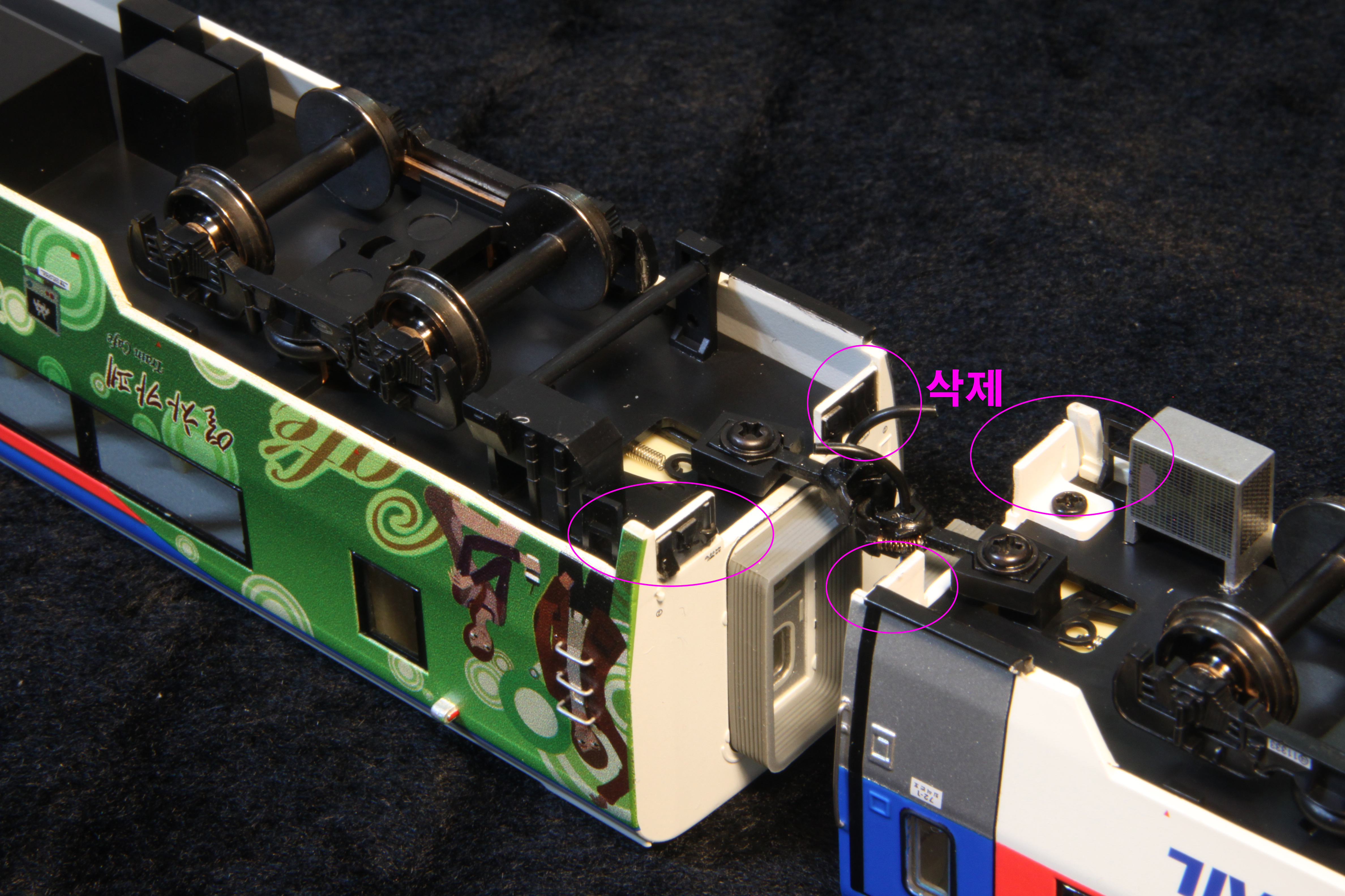 차라리 객차를 연결시 잘 보이지 안는 통로쪽으로 분리 조립하게되었습니다.