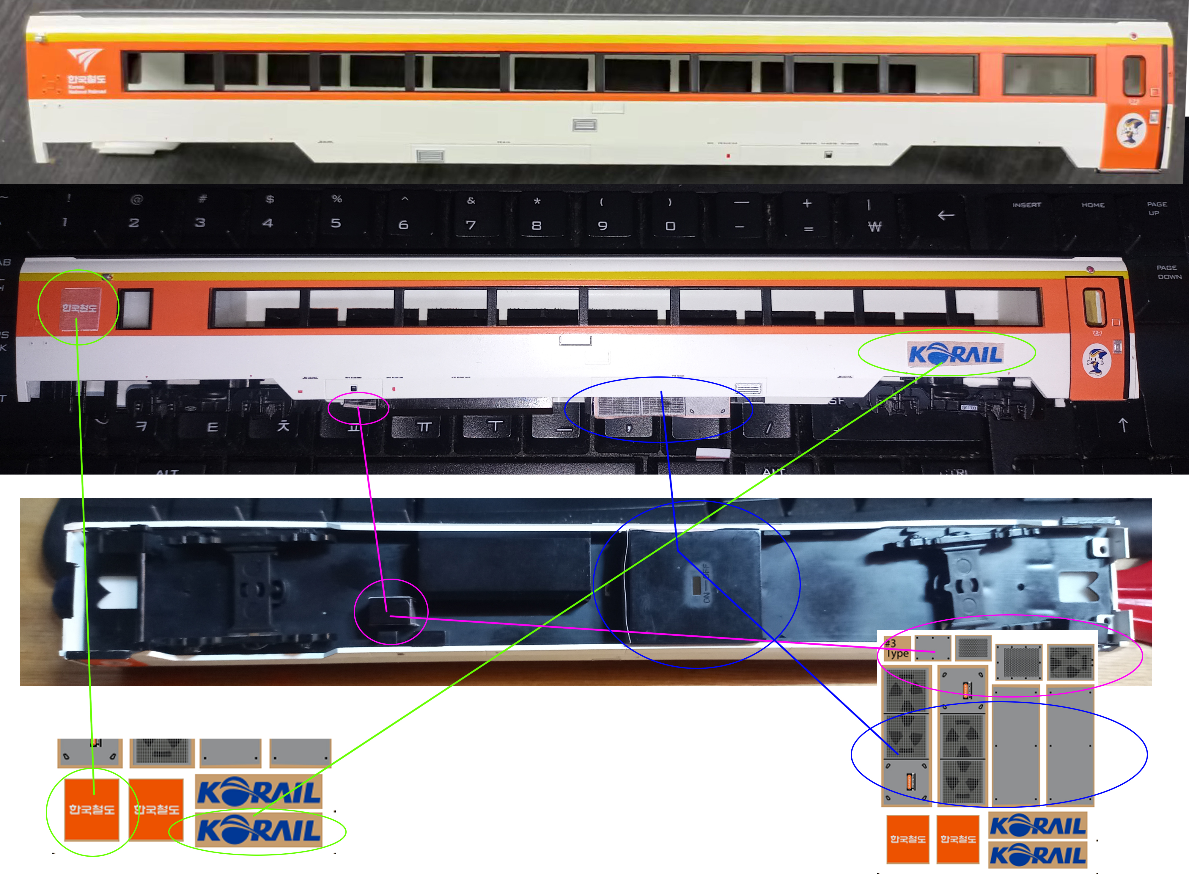 갈매기 마크에 한국철도만 있는것과 없는것이 있습니다. 이건 개인취향에 맞춰서 붙이시면되고