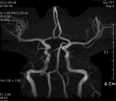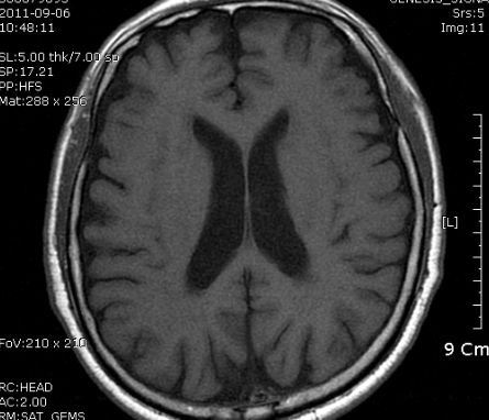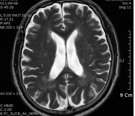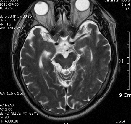 2011-9-8- 2일 경과후 우측하지 약화 뚜렷. 우측 시야 흐리다 함. 기억력도 떨어진다 함 (정확한 시야진찰과 기억검사는 미시행).