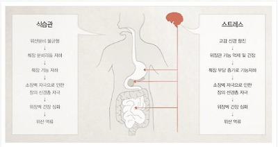 스트레스는 소화기 근육을 긴장시키고, 소화 기능을 떨어뜨리는 핵심 원인이 된다: 유독 스트레스를 받으면 체하는 사람을 누구나 본적이 있을 것이다. 스트레스는 소화기능을 떨어뜨릴 뿐만 아니라, 소화기 근육을 긴장시키는 주 원인이 된다. 현대인이 스트레스를 안 받는것은 불가능하다. 스트레스는 안 받는 것보다 잘 풀어내는 것이 핵심이다. 특히 걷는 운동은 스트레스 해소에 좋고 저녁 때 반신욕이나 족욕은 스트레스로 긴장된 소화기 근육을 풀어내는 데 좋은 효과가 있다.