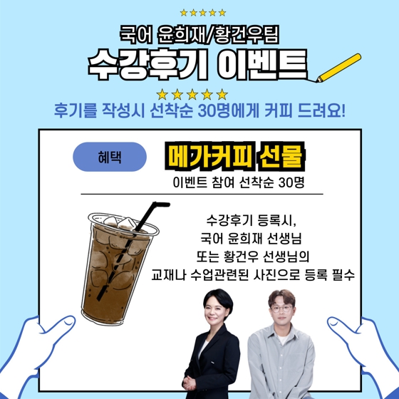 수강생 리얼후기 또는 SNS수강후기 참여시 메가커피 증정