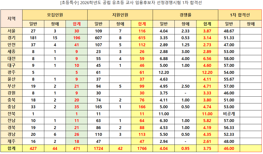 한줄평: "초등특수 1차 발표, '경기'는 기회였고 '광역시'는 전쟁이었다"