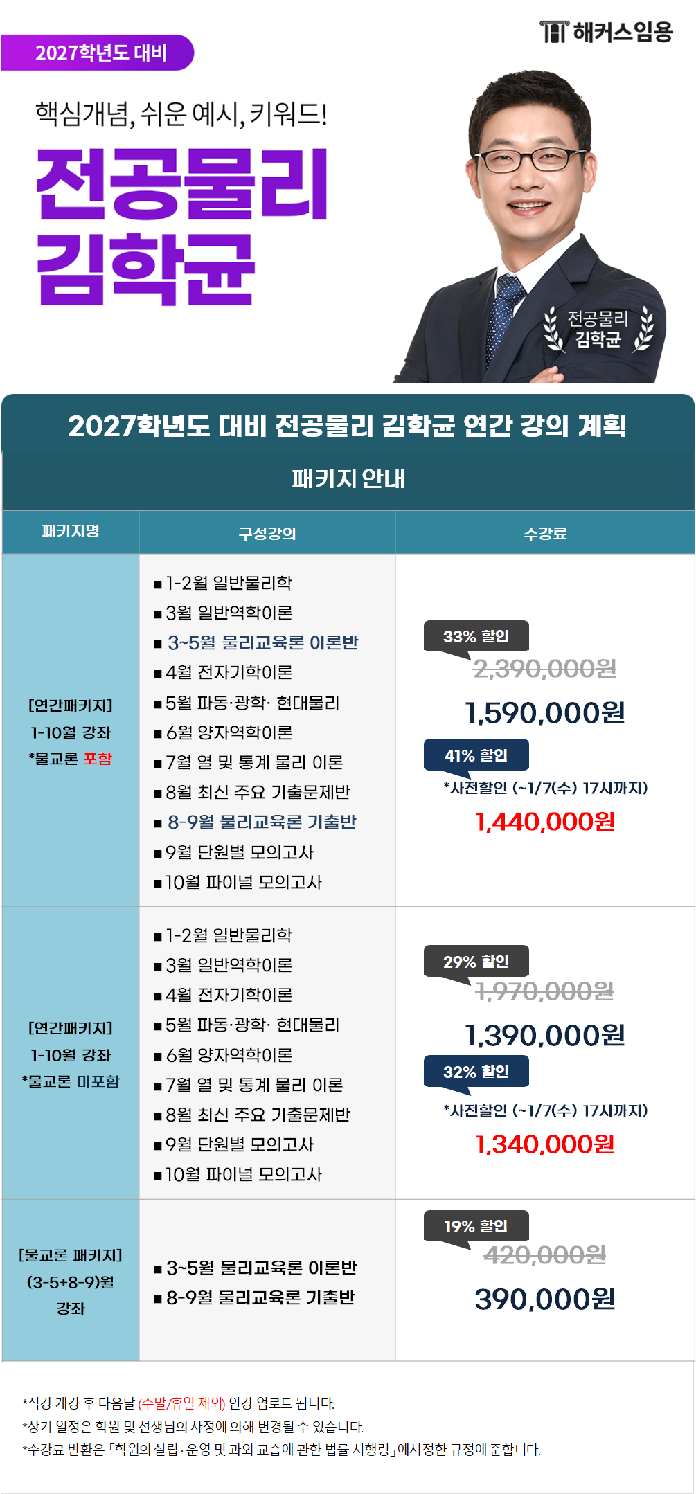 [김학균 전공물리] 2027학년도 대비 연간&상반기 강의 계획 및 패키지 안내 작성자해커스임용.|작성시간25.12.26|조회수24 목록 댓글 0 글자크기 작게가 글자크기 크게가 다음검색 현재 게시글 추가 기능 열기 북마크 공유하기 신고 센터로 신고 댓글 댓글 0 댓글쓰기 답글쓰기 댓글 리스트