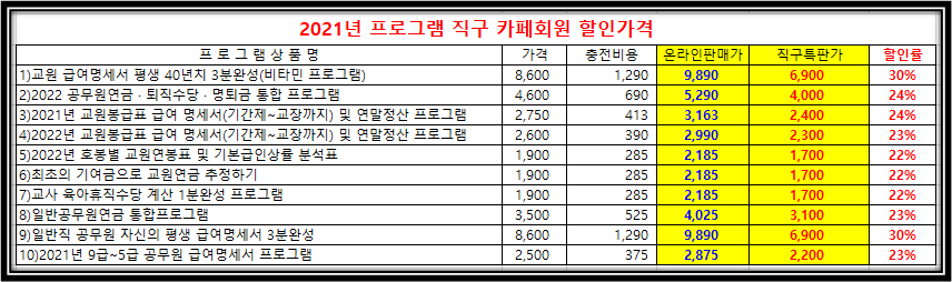 PS : 많은 시간을 관리하면서 회원가입 및 등록, 카페 댓글로 답변 드리고 팩트체크등 글쓰고, 프로그램 업그레이드 하고 업그레이드 발송하고 프로그램 문의 들어 오면 설명드리고 등을 하게 되하면서 소일거리로 프로그램을 만들어 저작권보호 차원에서 판매를 시작하게 되었는데 수수료 40 ~50% 공제하고 소득세 원천징수하게 되면 60% 정도가 수수료로 나가게 되니 구입해 주시는 선생님들의 소중한 대부분의 돈이 판매업체 수수료로 나가게 되더라고요.