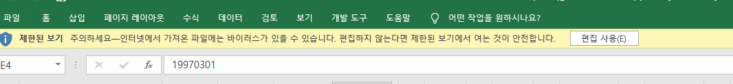 필독 : 편집 사용 클릭하지 않고 사용하시는 분들이 가끔 있는데 엑셀은 인터넷으로 다운 받을시 아래와 같은 경고 메시지가 뜨게 되는데 편집 사용을 꼭 클릭후 사용하셔야 합니다.