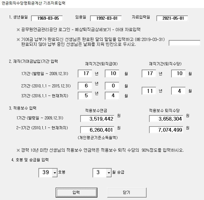 작성자담소 작성시간 19.04.15 자료 정말 감사합니다. 저는 10년 미만 저경력 교사인데.. 3. 적용보수연금란에 적용보수퇴직수당의 90%를 더하란 말씀 맞나요?