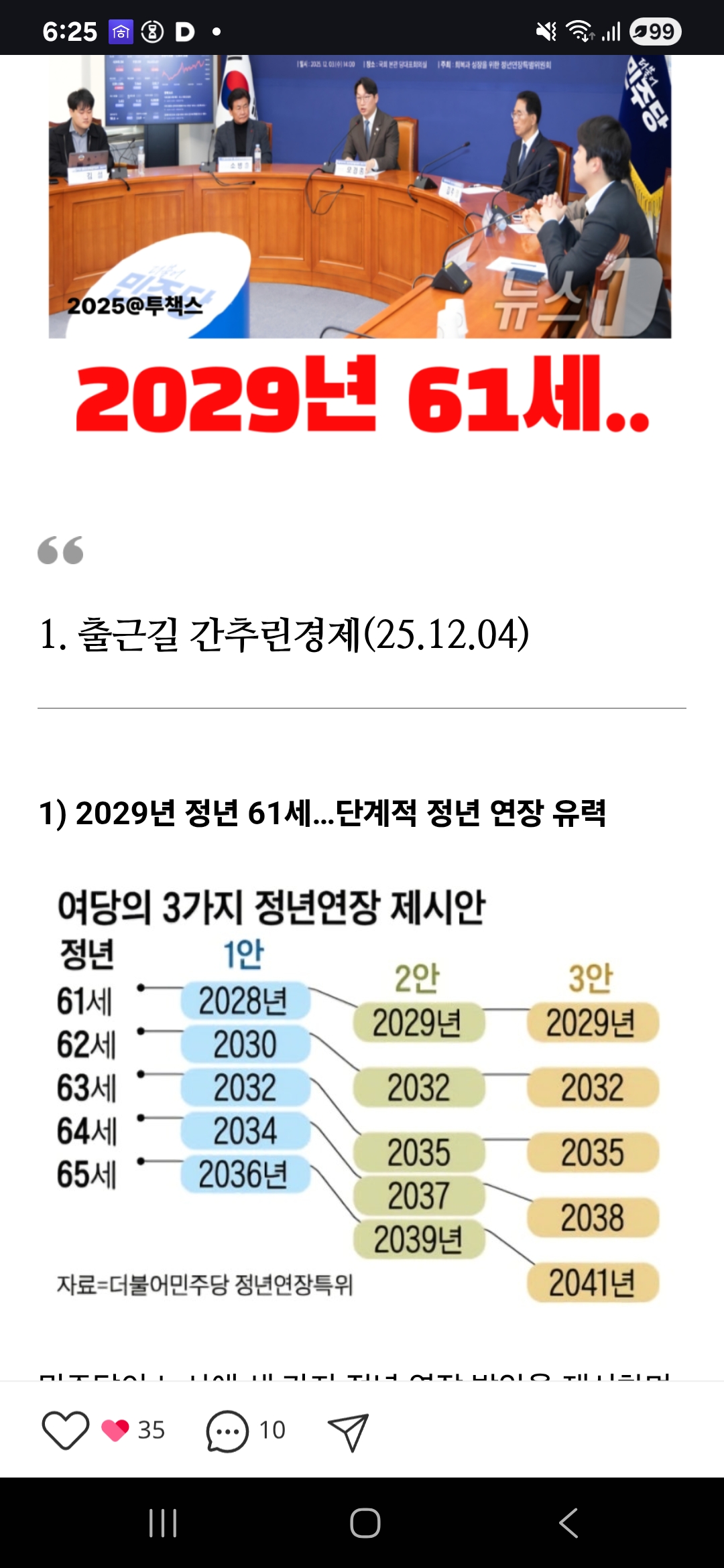 작성자파랑이 작성시간 25.12.18 연금개혁이 되어 65세 수령이 되는 나이는 어떤 식으로 나마 정년 연장이 있지 않을까요??