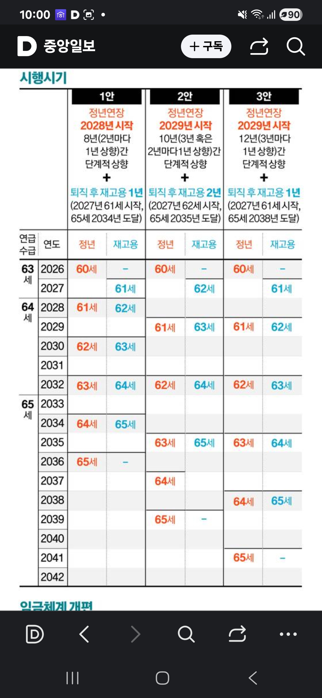 여당에서 최근 내 놓은 세 가지 정년 연장 방안이라고 합니다.