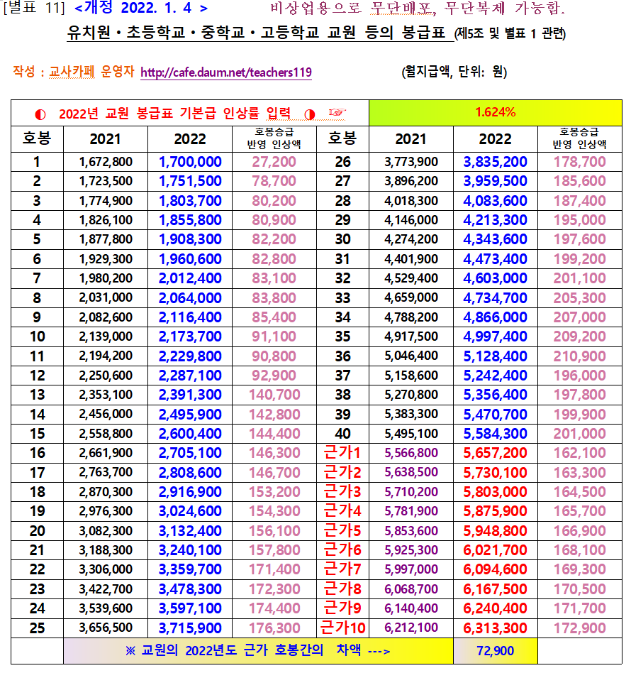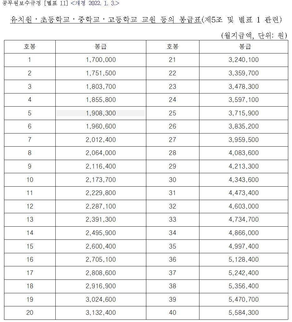 최종 확정된 교원봉급표는 아래와 같습니다.