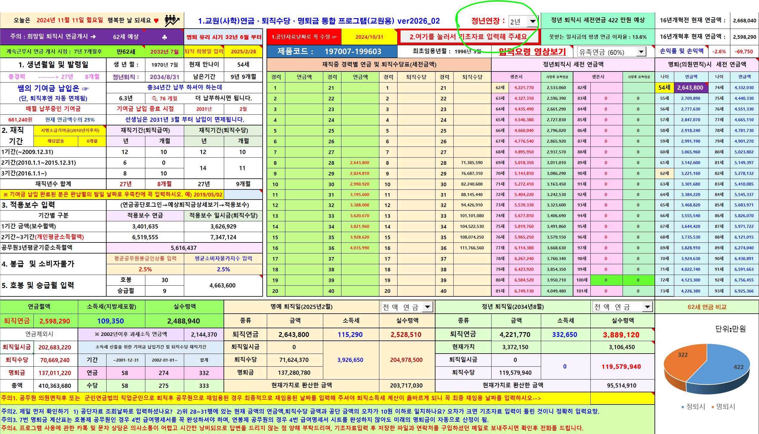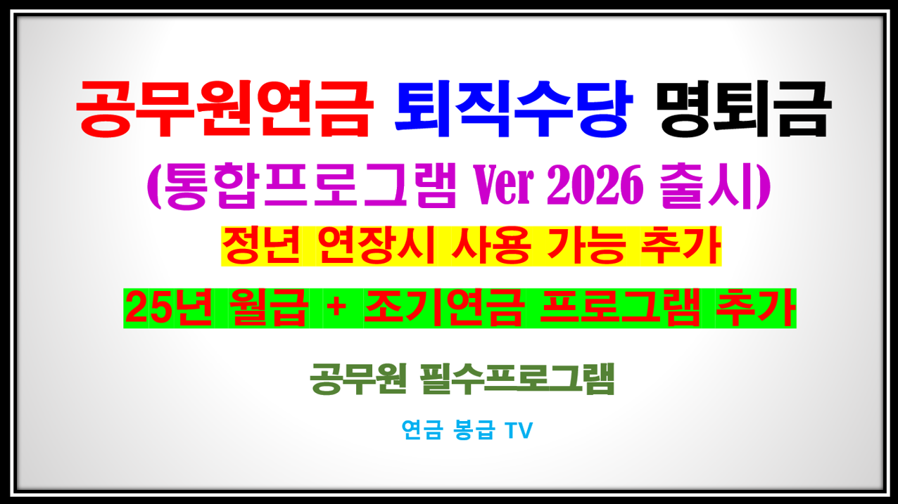 벌써 1년이 지나 2026 버전 공무원연금퇴직수당명퇴금 통합프로그램 출시되었습니다.