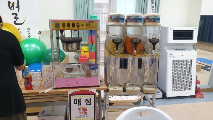 그래서 히어로컴퍼니에서는 슬러시기계, 팝콘기계, 파라솔, 의자, 테이블 대여로 극장분위기를 느낄수있게 해주었답니다