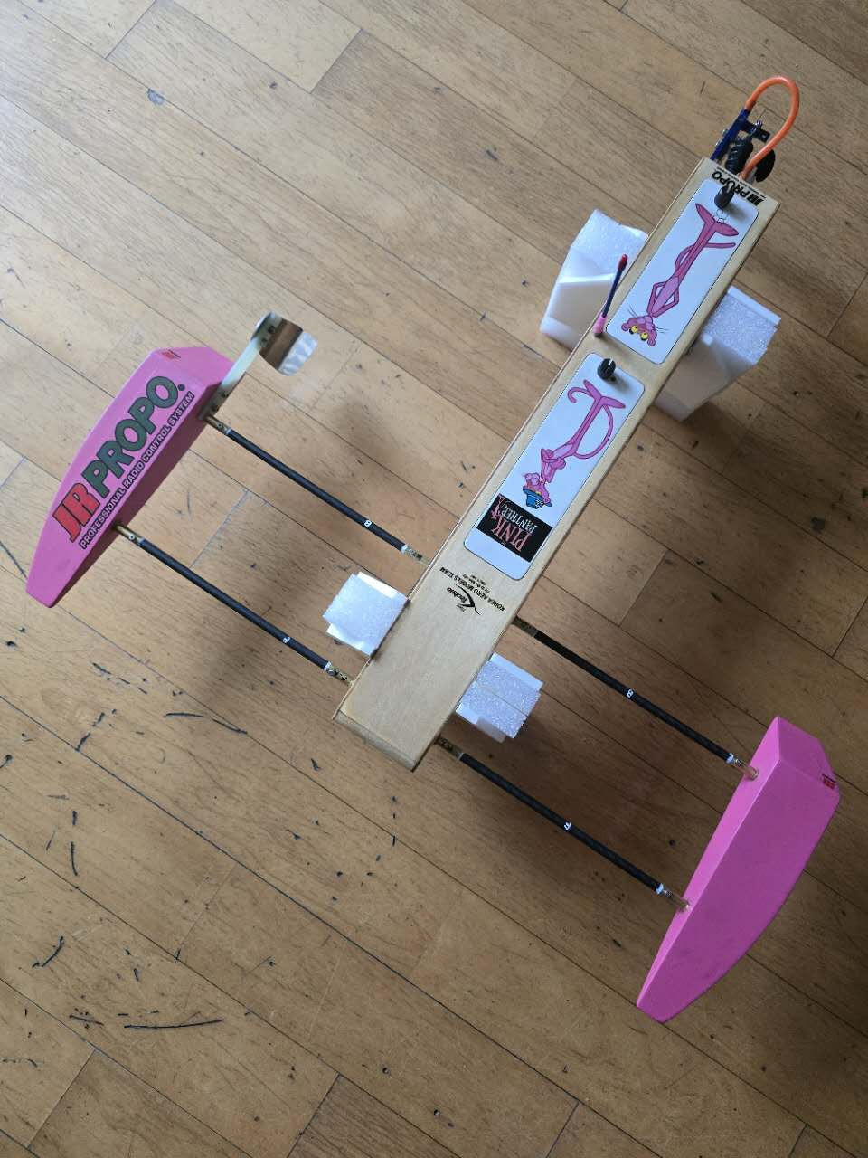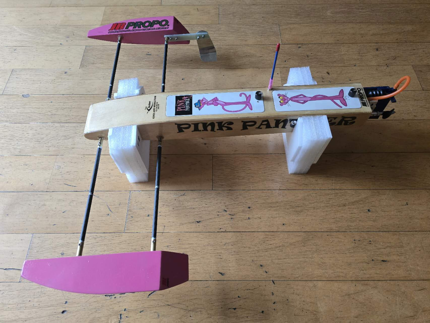 안쪽은 1번 칠하여 마감. 겉은 투명락카로 표면 마감후 SPONSON 은 락카 PINK 스프레이로 칠.