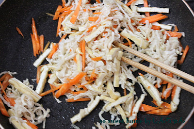 식용유를 두른 팬에 무말랭이랑 당근이랑 유부를 달달 잘 볶아 주세요