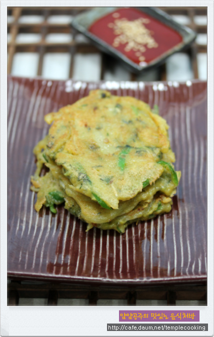 반죽: 위에 요리를 하고 남은 애호박살 1개분+ 우리밀밀가루1컵+물1컵. 녹차소금약간