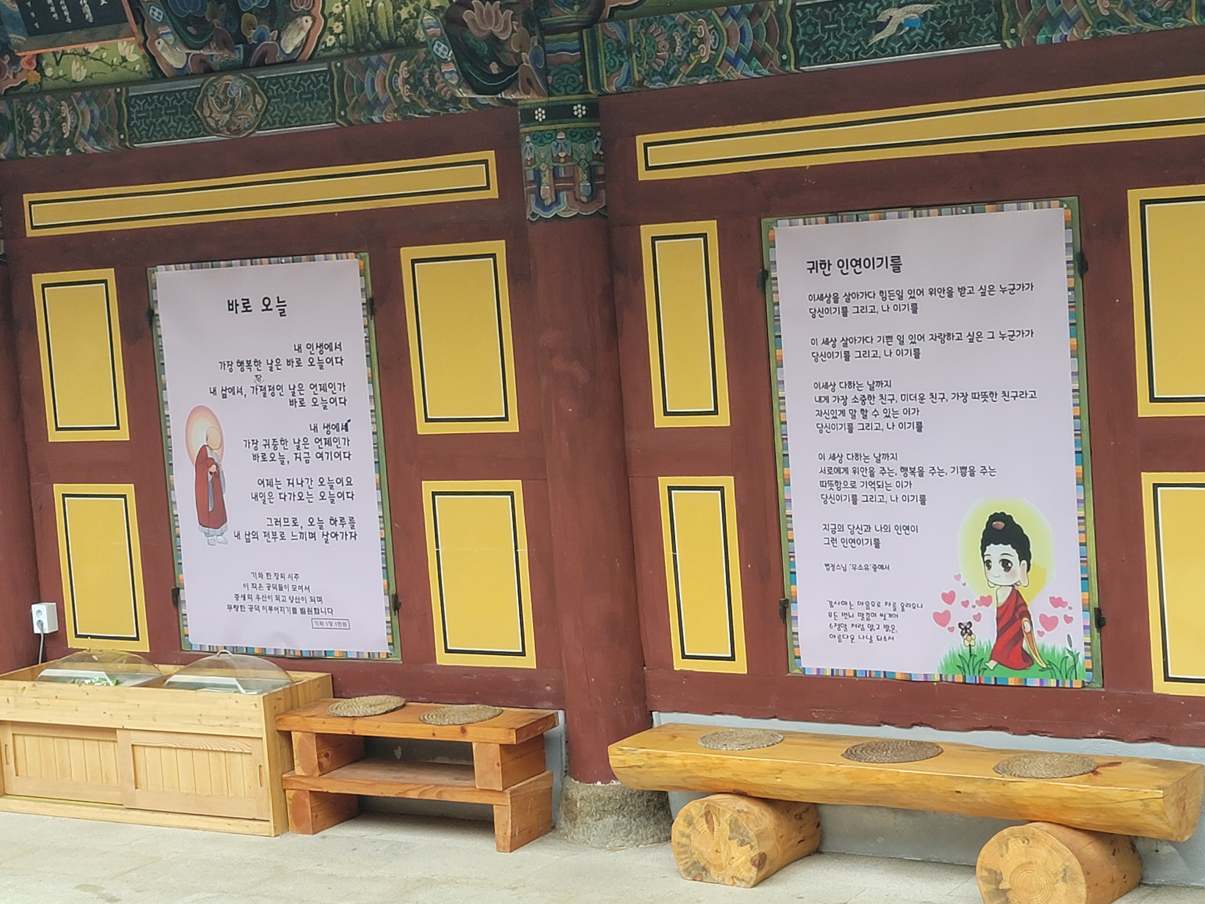 대중을 위한 배려도 좋았습니다. 지장전 오른쪽 바깥벽에는 차를 마실 수 있도록 의자와 차가 준비 되었네요..