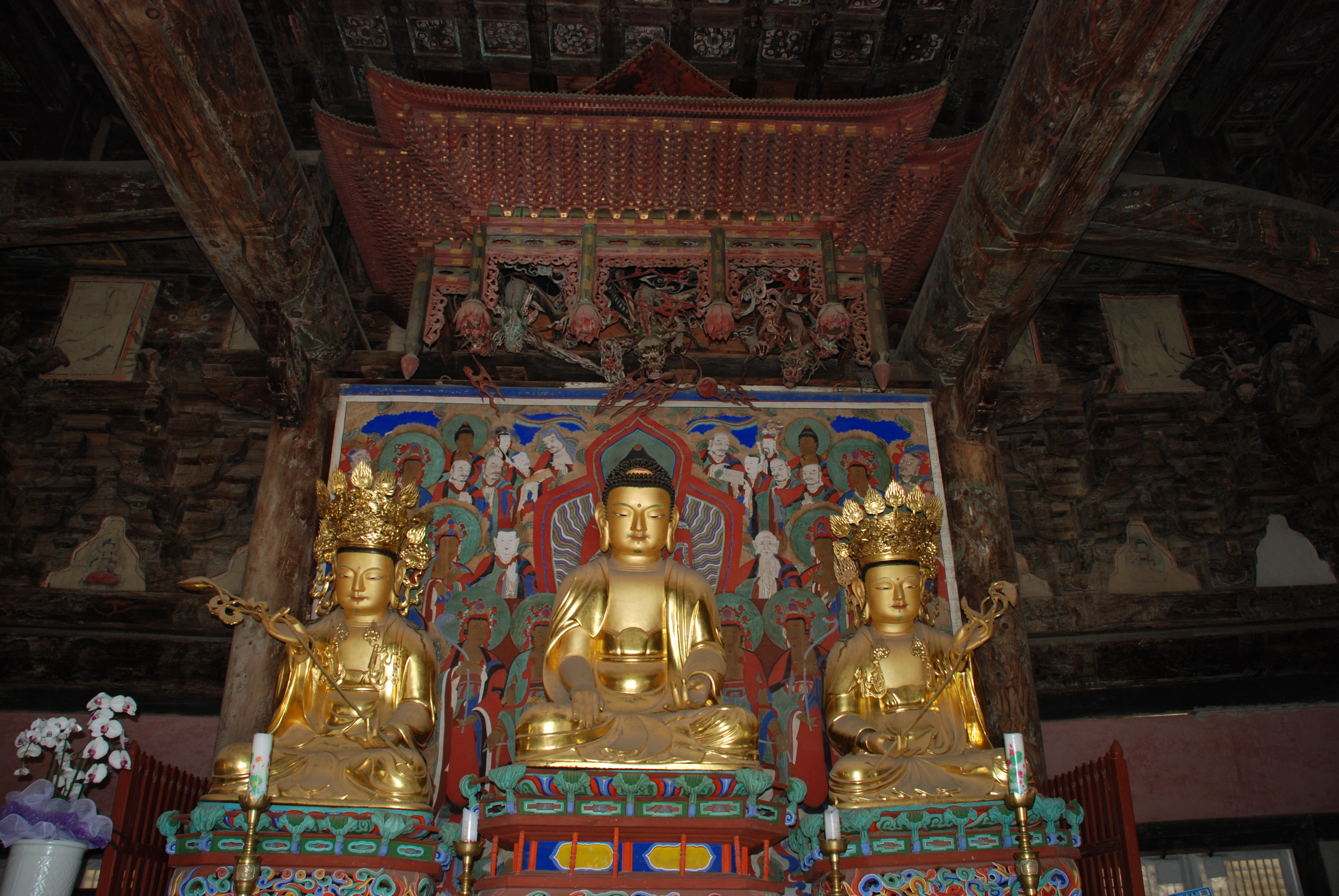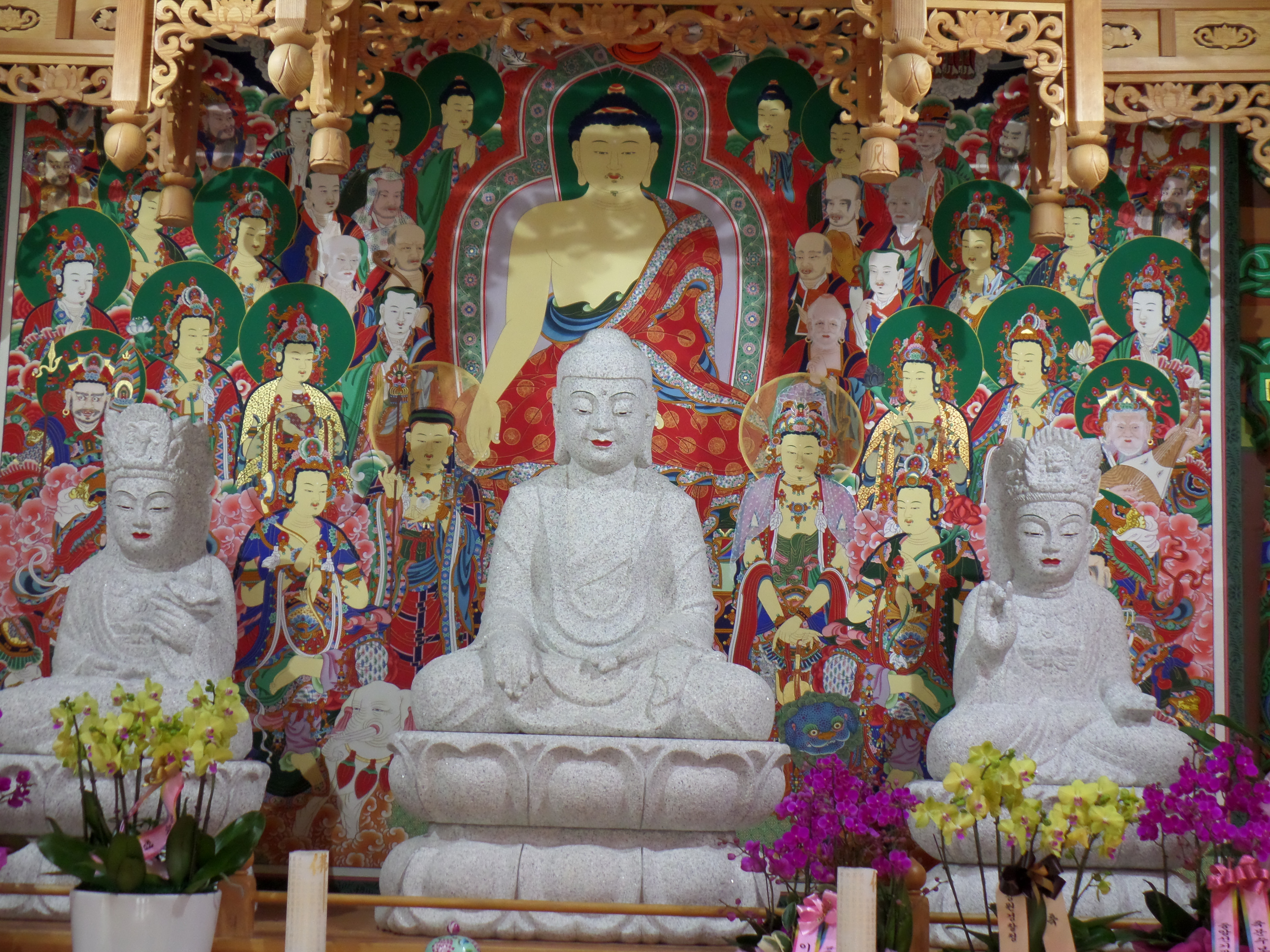 보통 문수보살과 보현보살은 석가모니불 좌우로 모십니다.