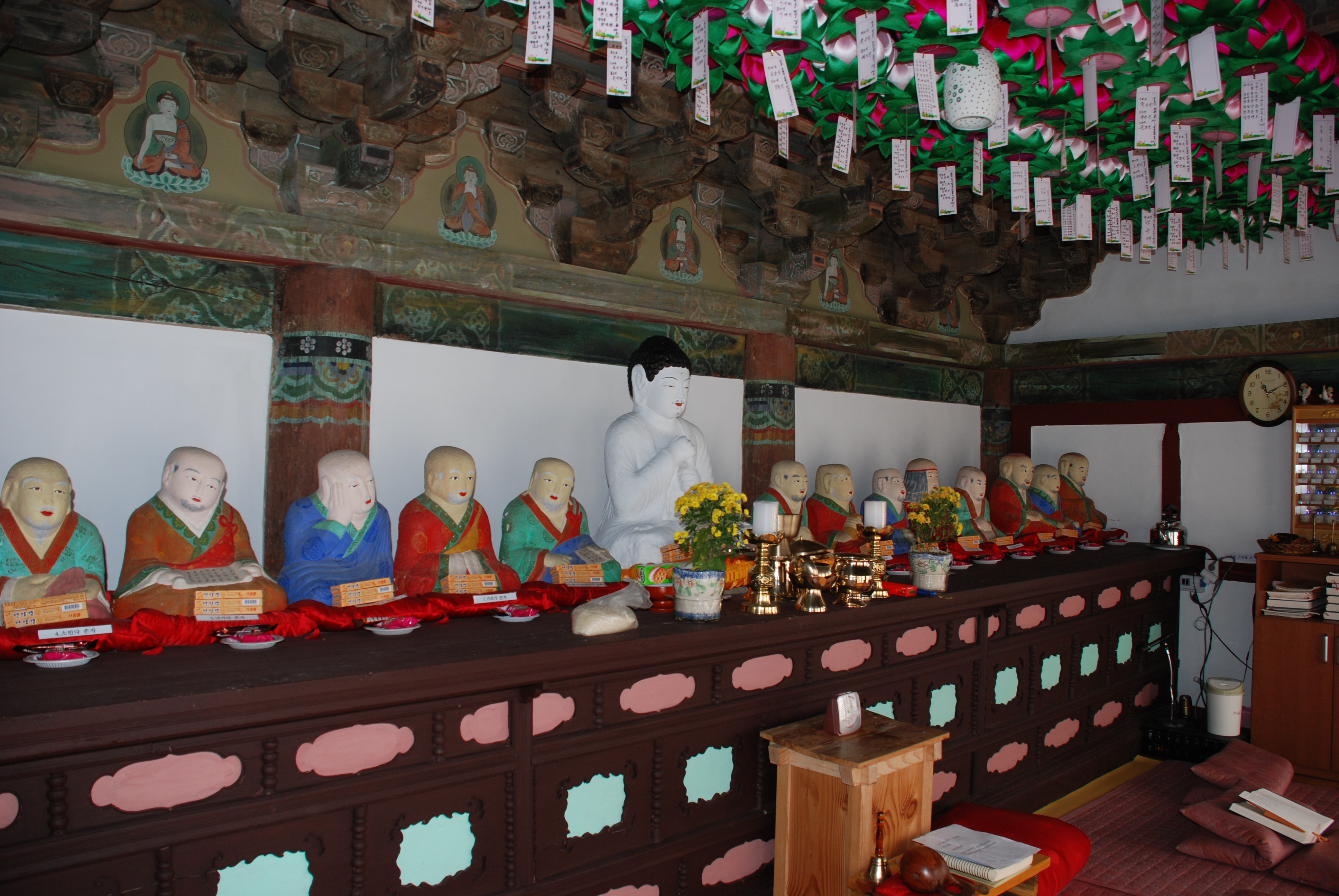 이에 근거하여 16나한을 모신다고 하는데, 부처님 당시 제자와 이후 아라한이 함께 합니다.
