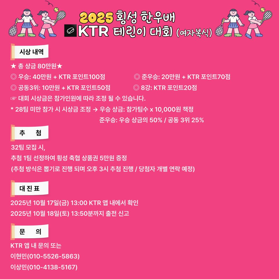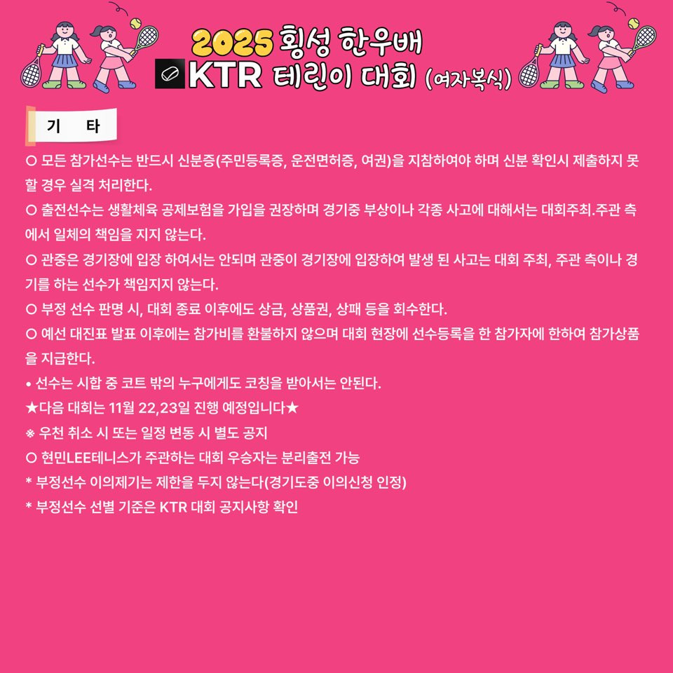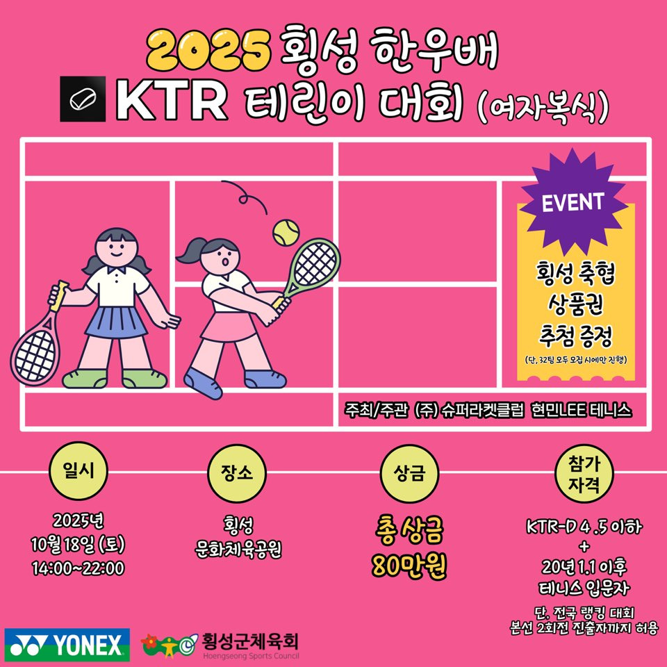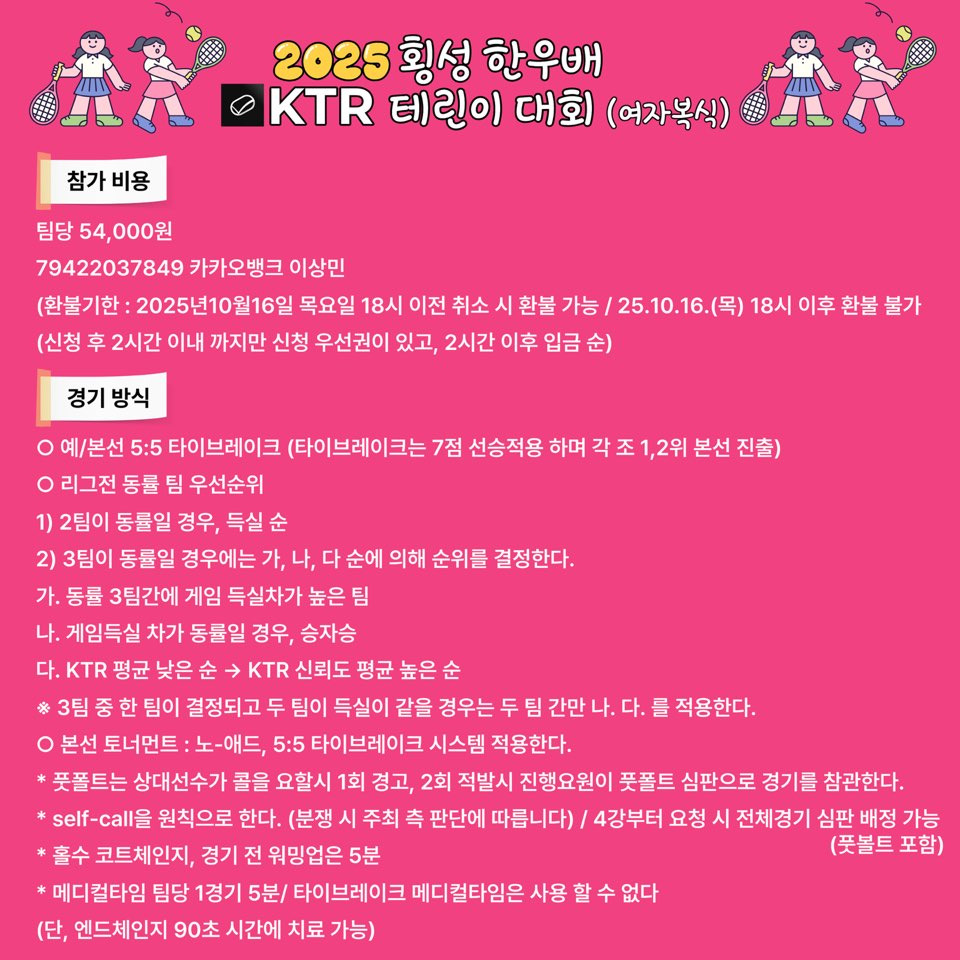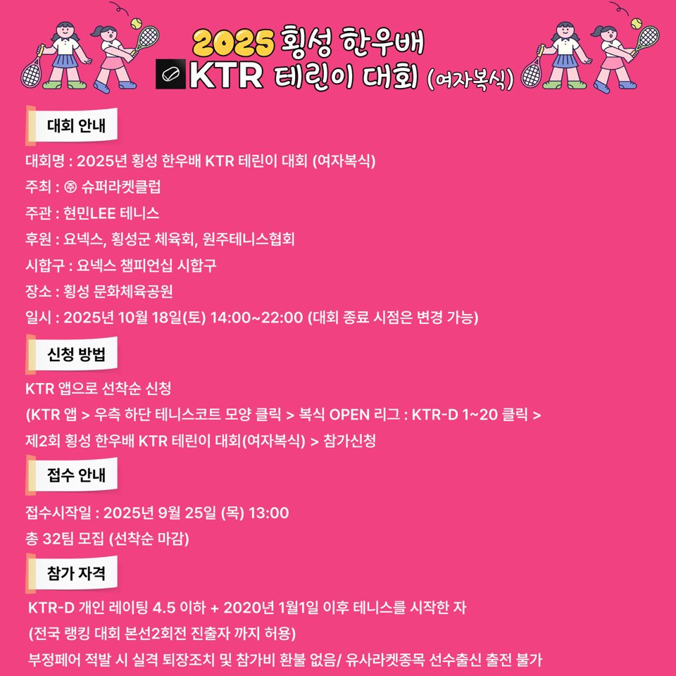 2025 횡성 한우배 KTR 테린이 대회(여자복식) 작성자이상민|작성시간25.09.23|조회수9 목록 댓글 0 글자크기 작게가 글자크기 크게가 다음검색 현재 게시글 추가 기능 열기 북마크 공유하기 신고 센터로 신고 댓글 댓글 0 댓글쓰기 답글쓰기 댓글 리스트