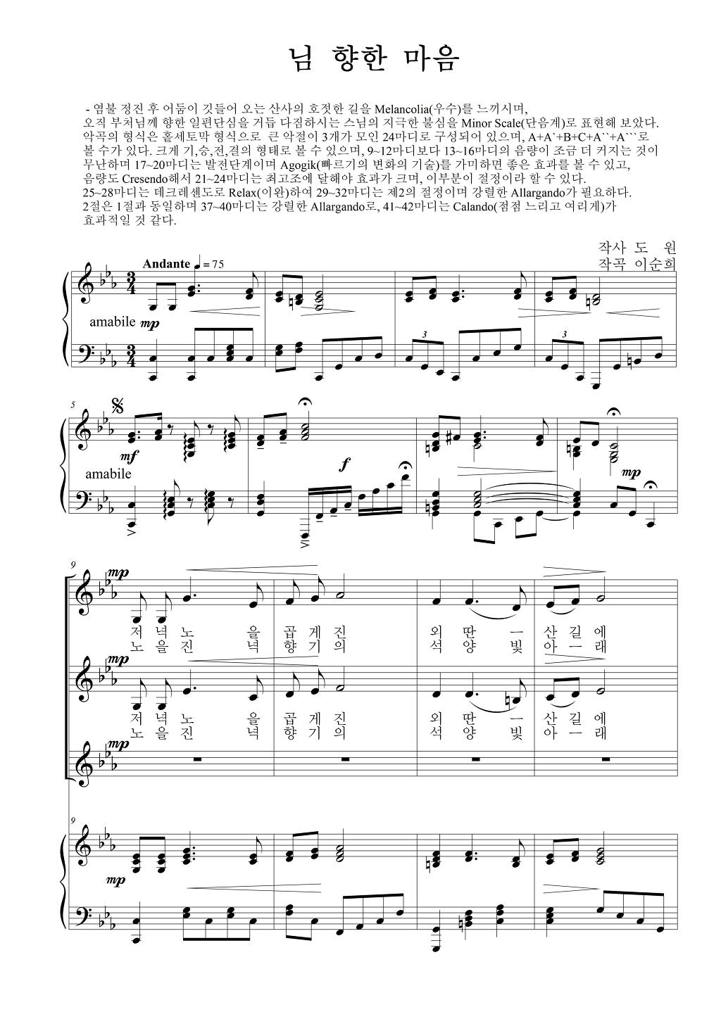오직 부처님께 향한 일편단심을 거듭 다짐하시는 스님의 지극한 불심을 Minor Scale(단음계)로 표현해 보았다.