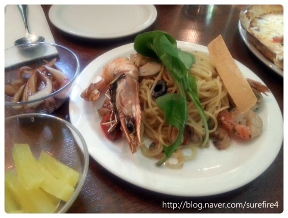 요즘 크림파스타를 자주 먹어서 오일파스타가 먹고 싶어서 시켰어요~ ㅋ