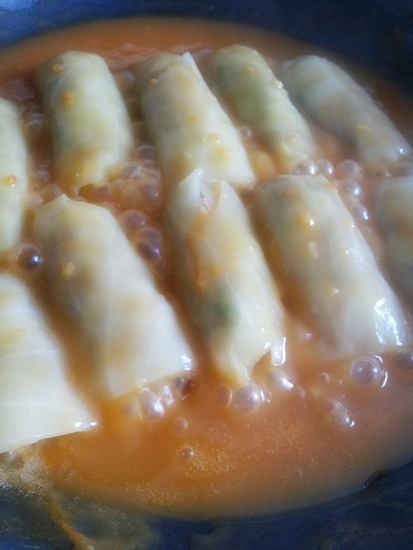 한국에서 양배추속에 고기를 넣고 탕을 끓여서 먹으면 시원한 맛에 손님접대를 하면 그럴싸하다.