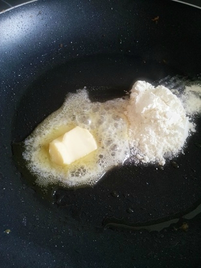 후라이팬에 버터를 두르고 밀가루 한스푼을 넣고 볶아준다.