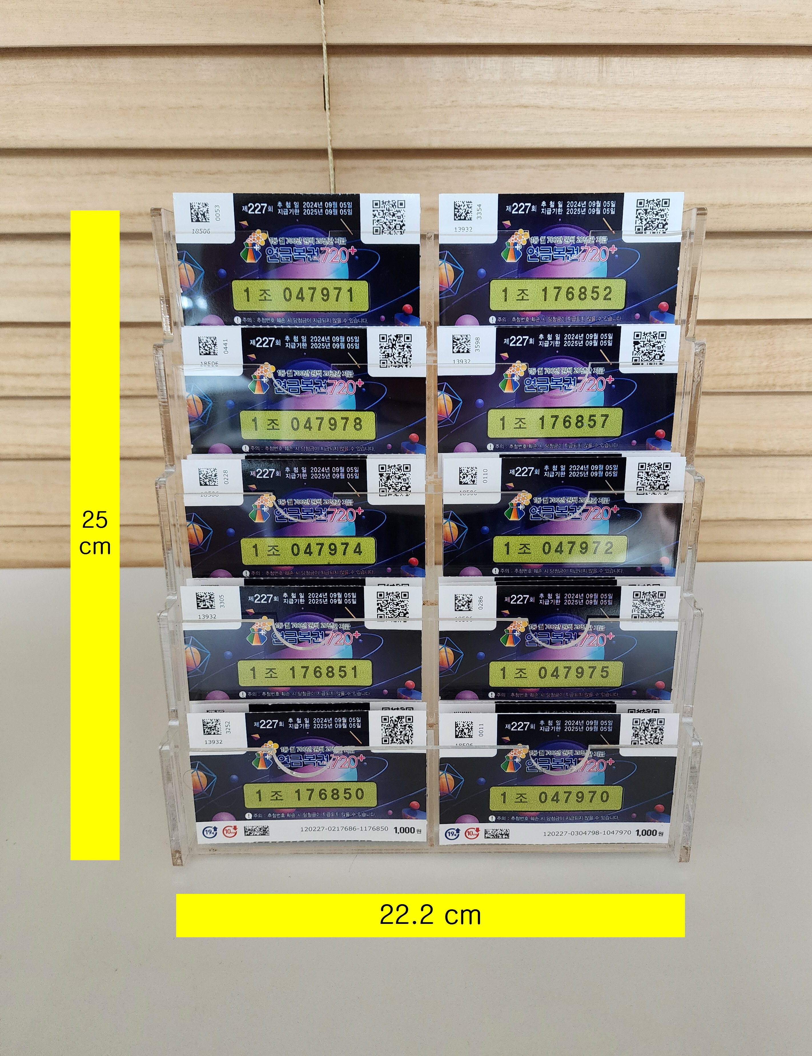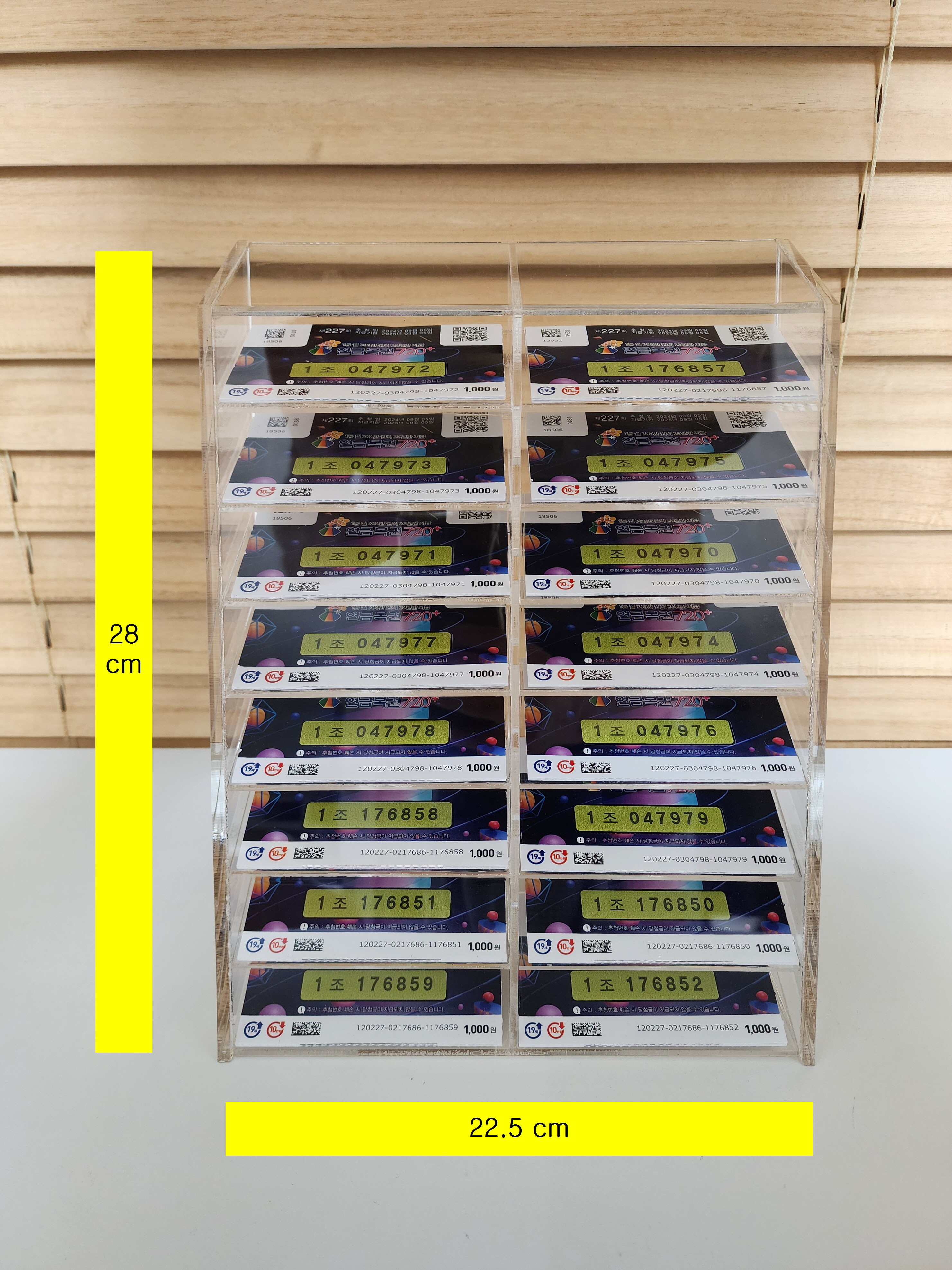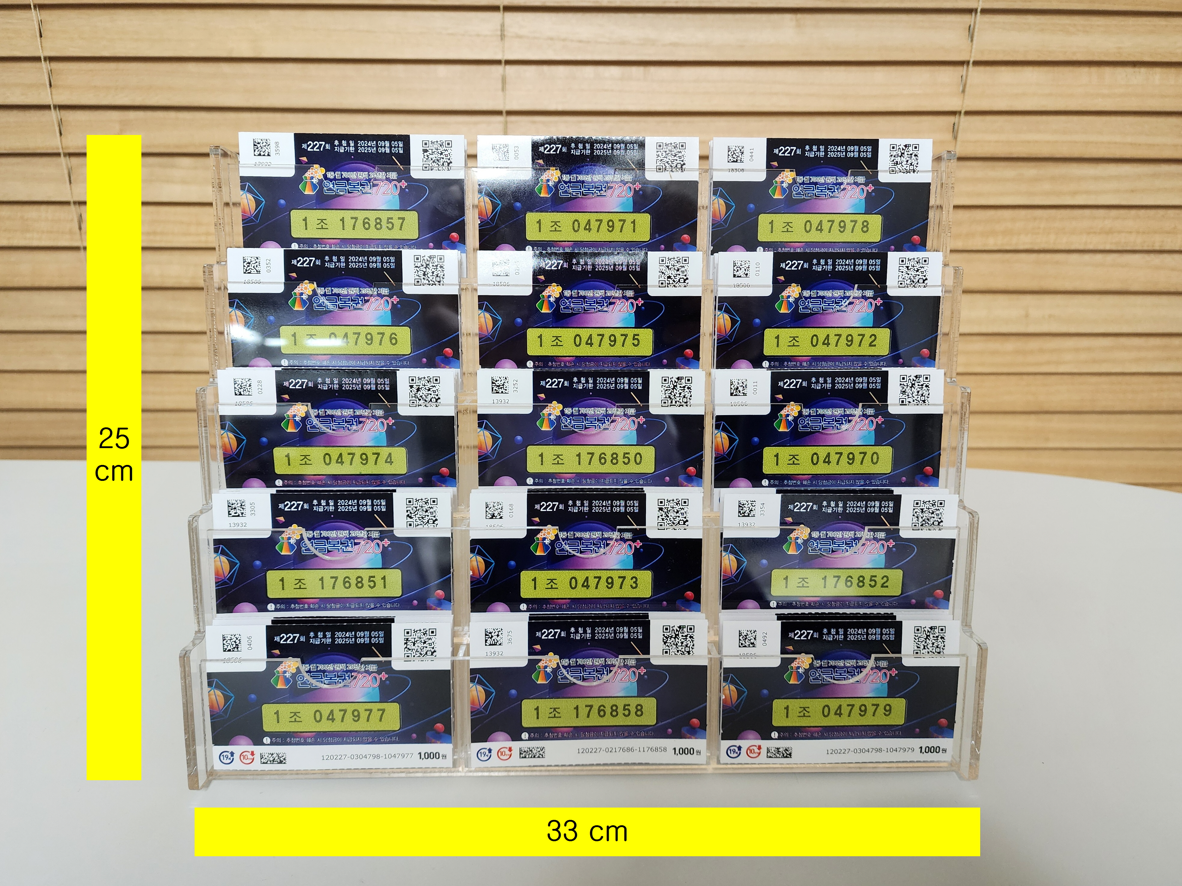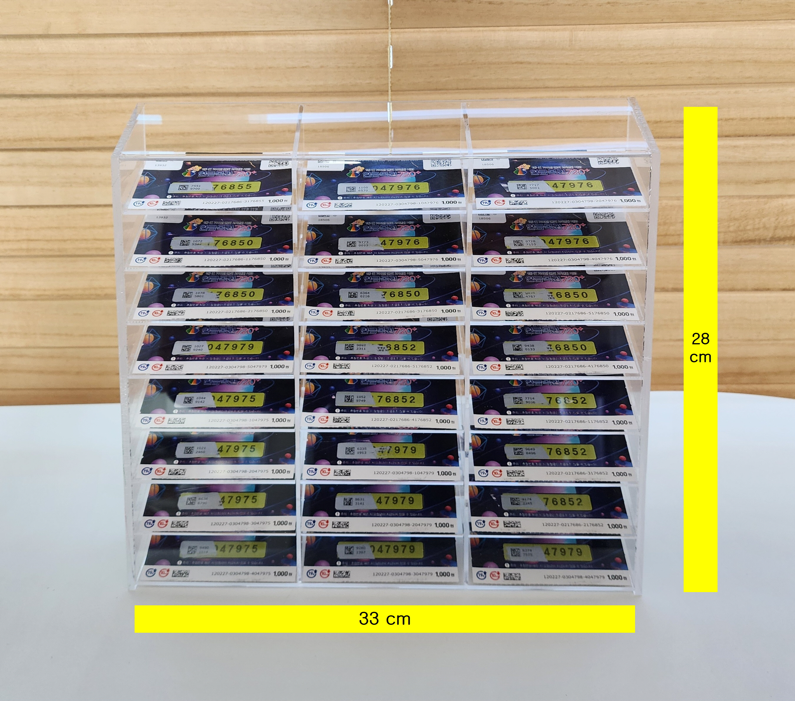 | 7번 - 즉석복권형 (사진을 클릭하시면 확대) | 26,000원 11.5cm * 11cm * 24cm ※ 복권을 뒷쪽으로 꺼냄 500, 1000, 2000권 모두 사용가능 | |
