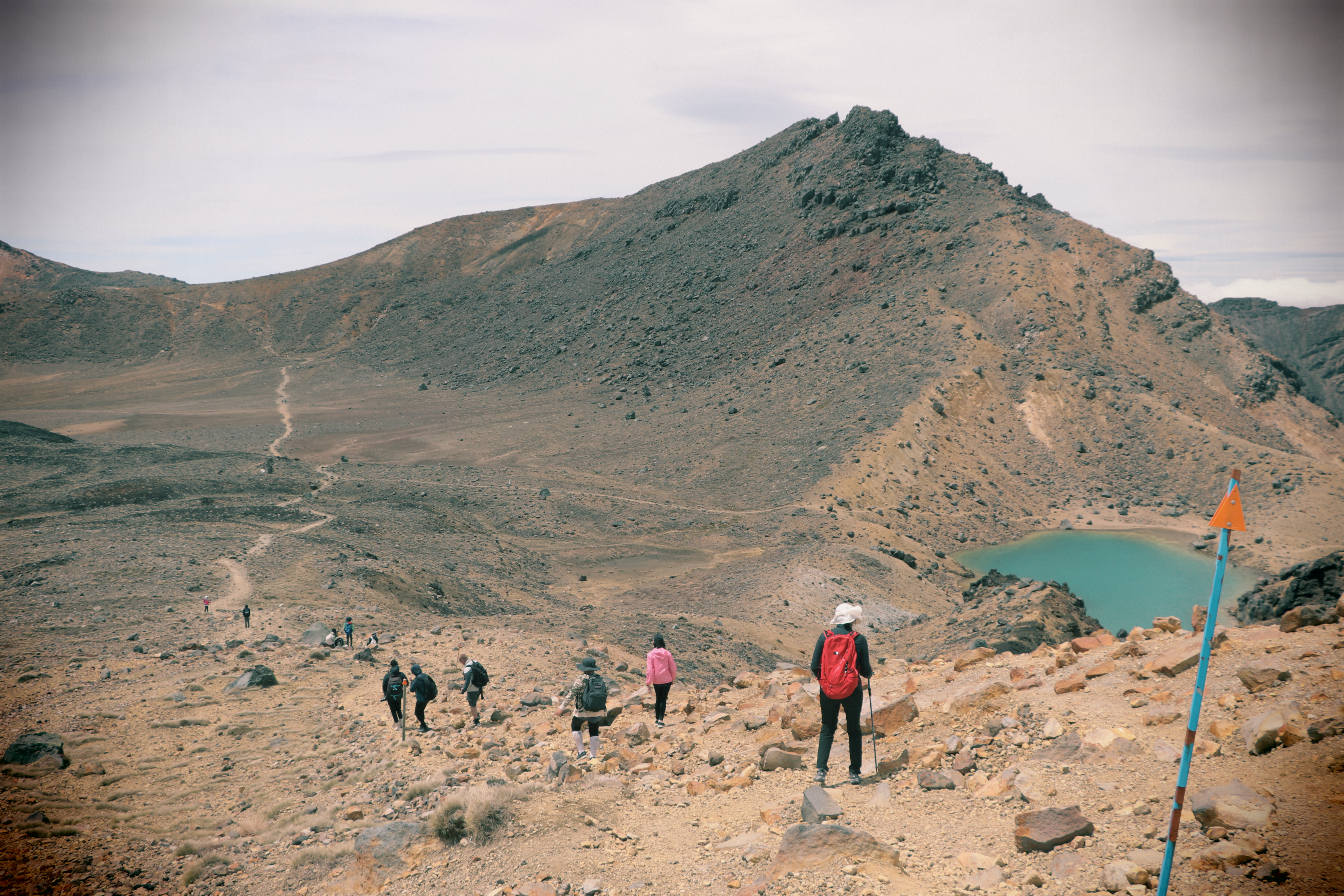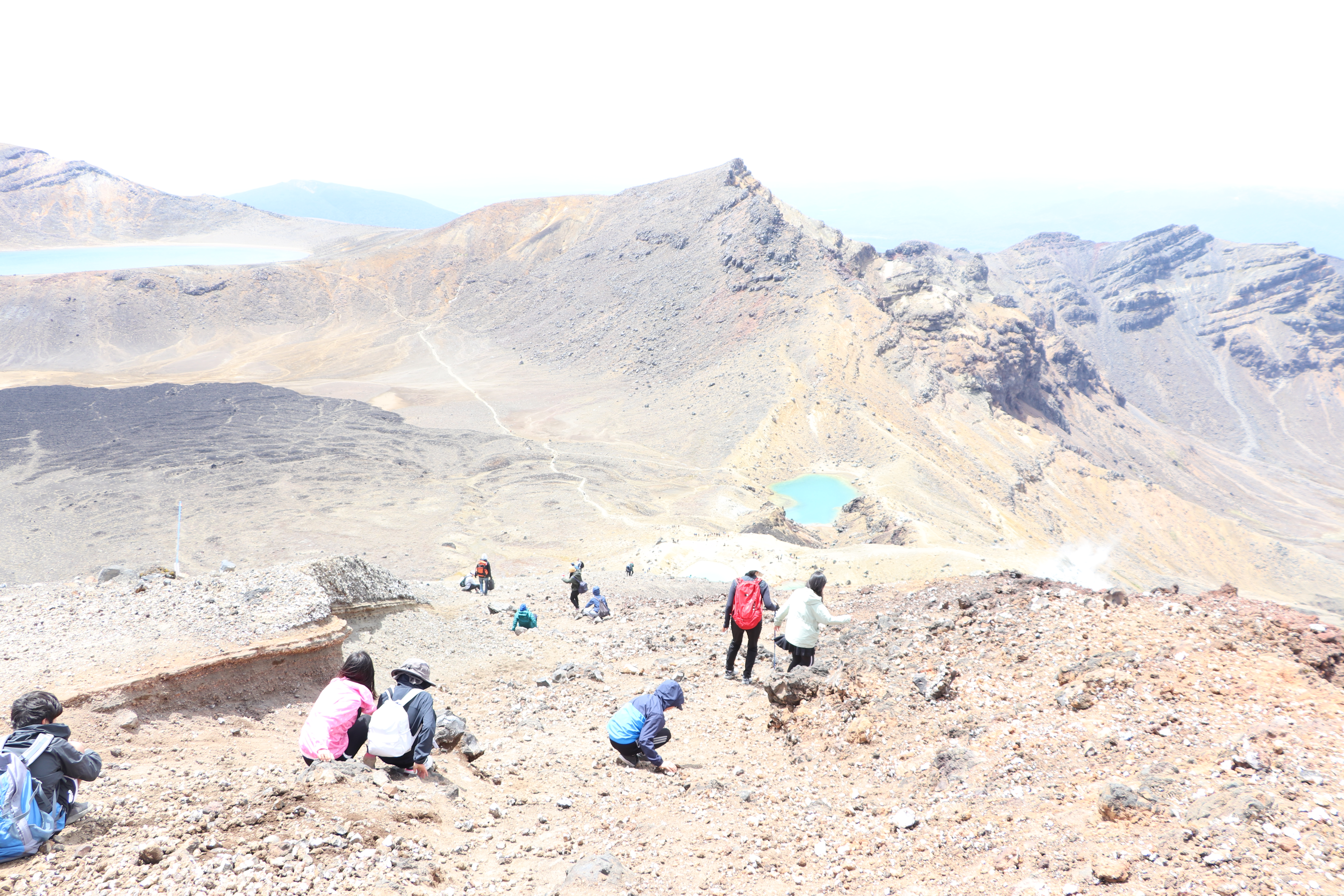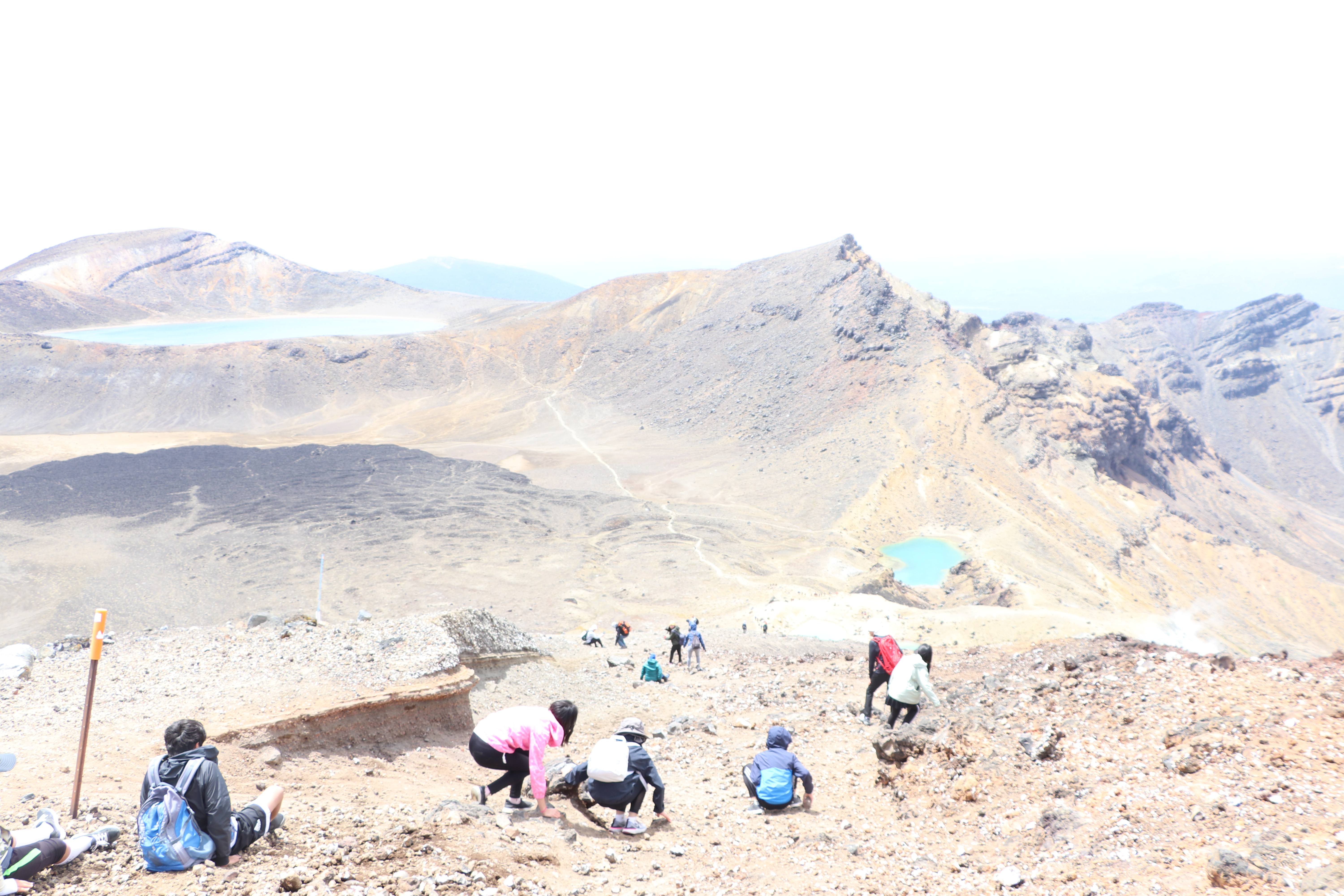 저 곳은 통가리로 트래킹 코스 중에서 가장 높은 봉우리인 Red Crater (1886m)입니다. 저희가 오른 정상에서 다시 약 3시간은 걸려서 오르고 내릴 수 있는 곳인데요. 저는 항상 그룹을 인솔하다보니 저기를 올라갈 기회가 없네요. 몇년전에 2/3 지점까지 오르다가 다른 팀과 스케줄 문제로 다시 급하게 내려왔었네요.