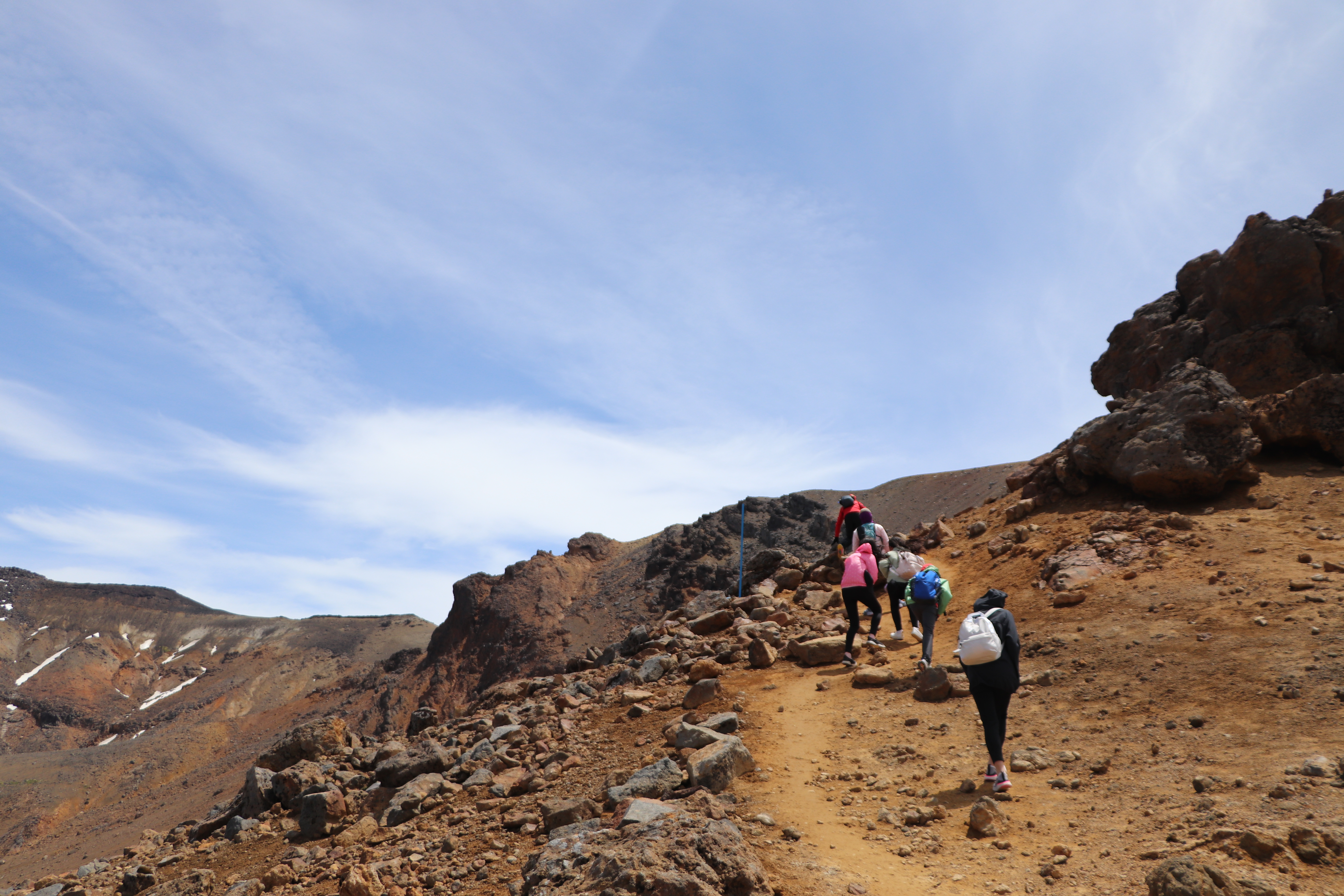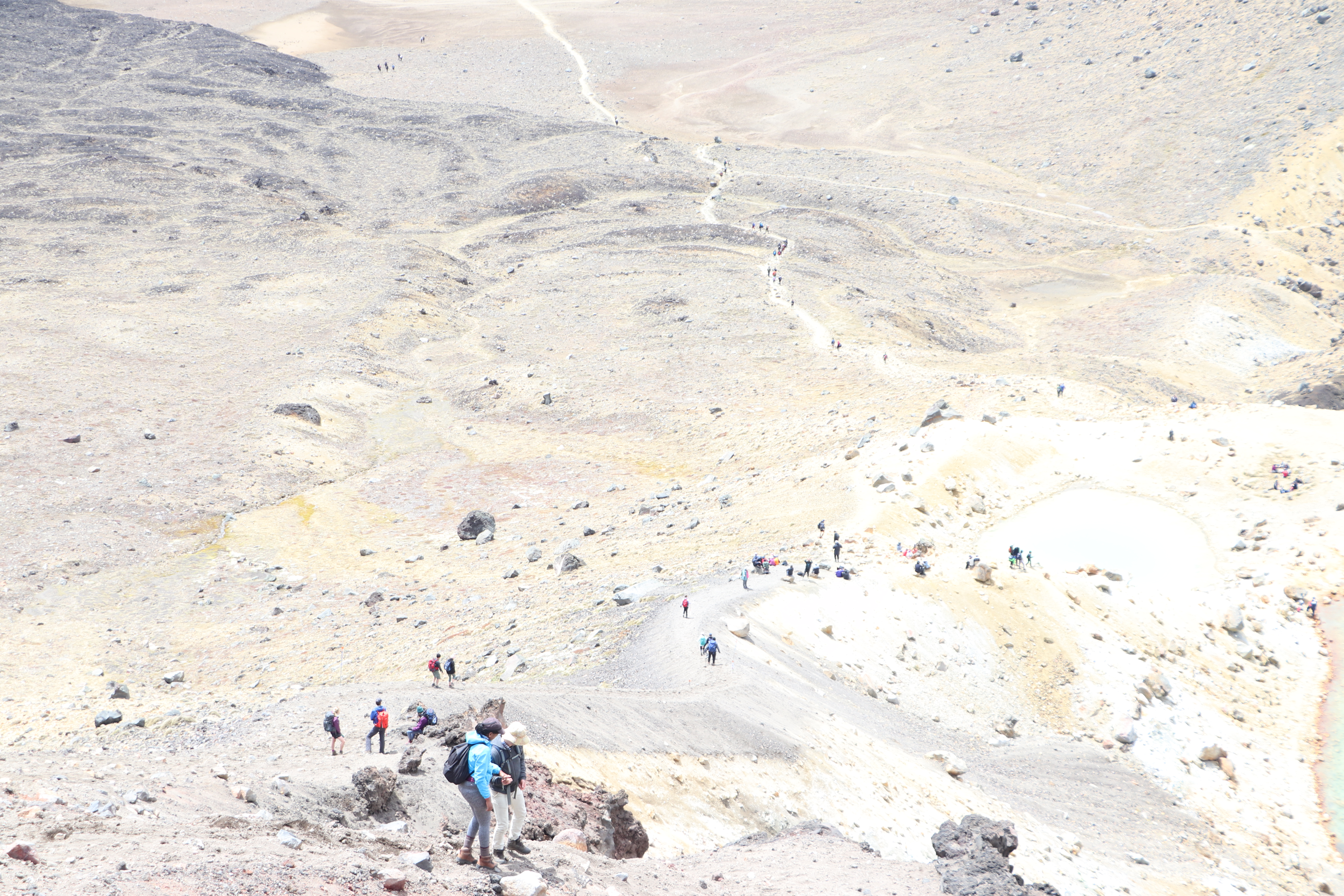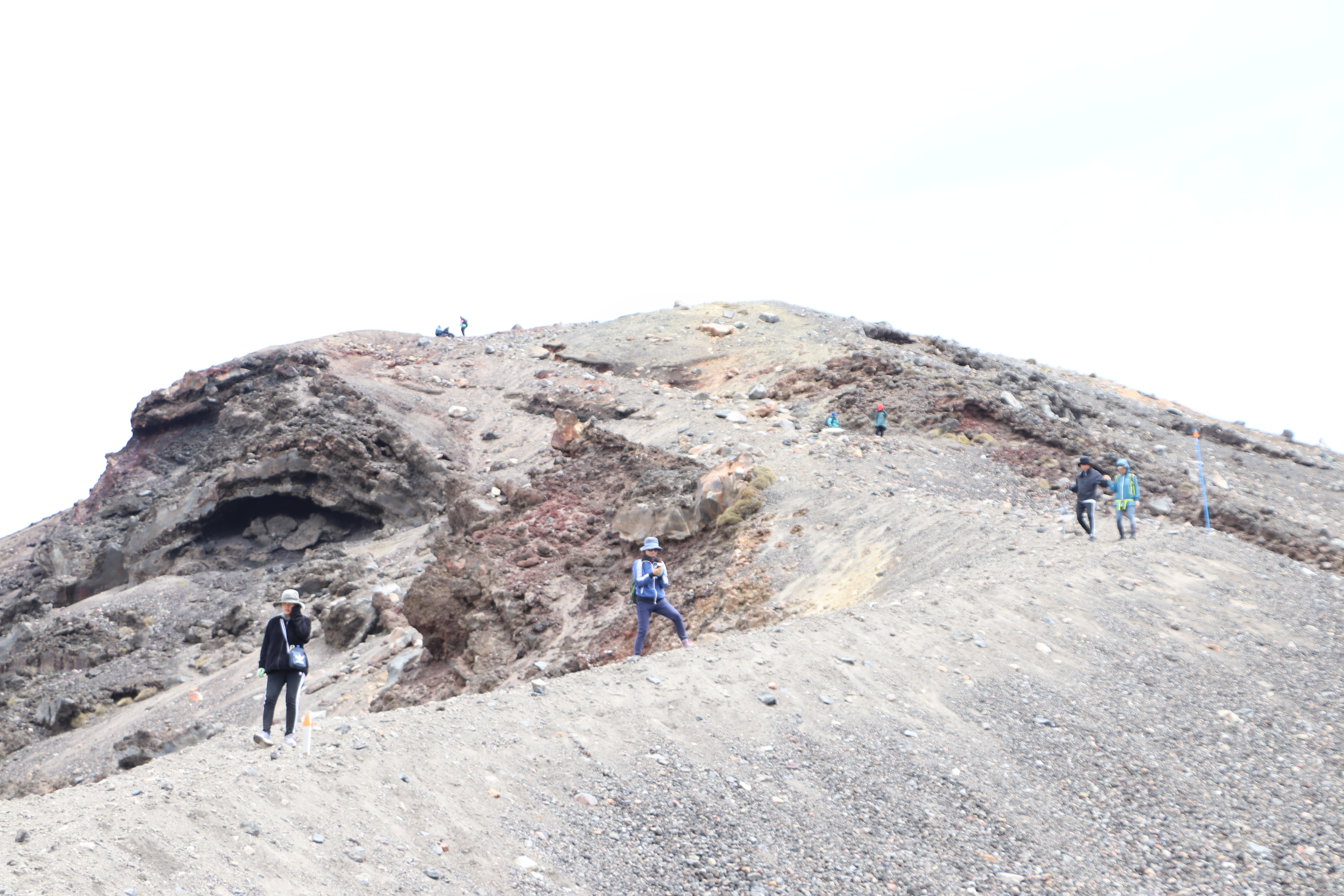 저 곳은 통가리로 트래킹 코스 중에서 가장 높은 봉우리인 Red Crater (1886m)입니다. 저희가 오른 정상에서 다시 약 3시간은 걸려서 오르고 내릴 수 있는 곳인데요. 저는 항상 그룹을 인솔하다보니 저기를 올라갈 기회가 없네요. 몇년전에 2/3 지점까지 오르다가 다른 팀과 스케줄 문제로 다시 급하게 내려왔었네요.