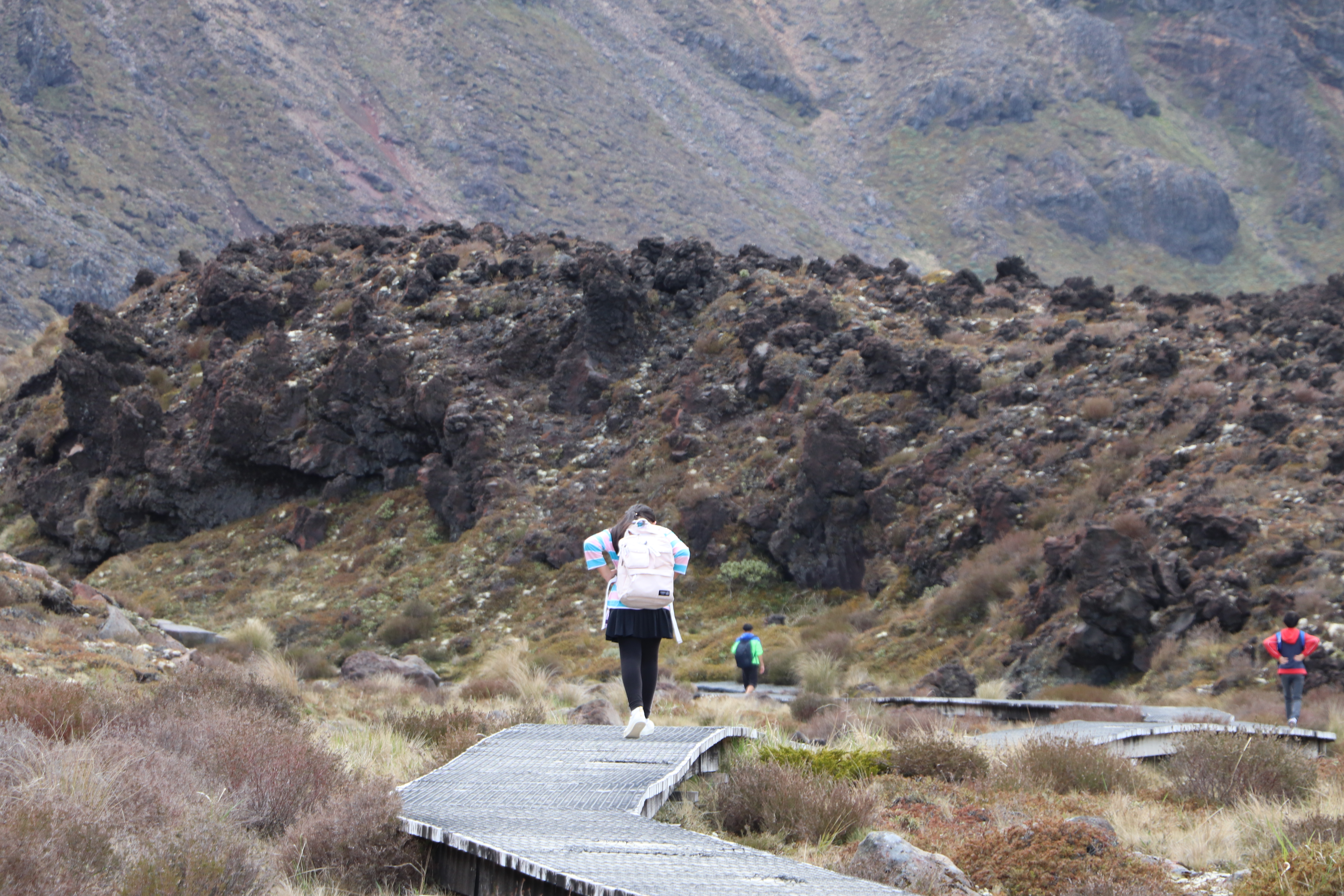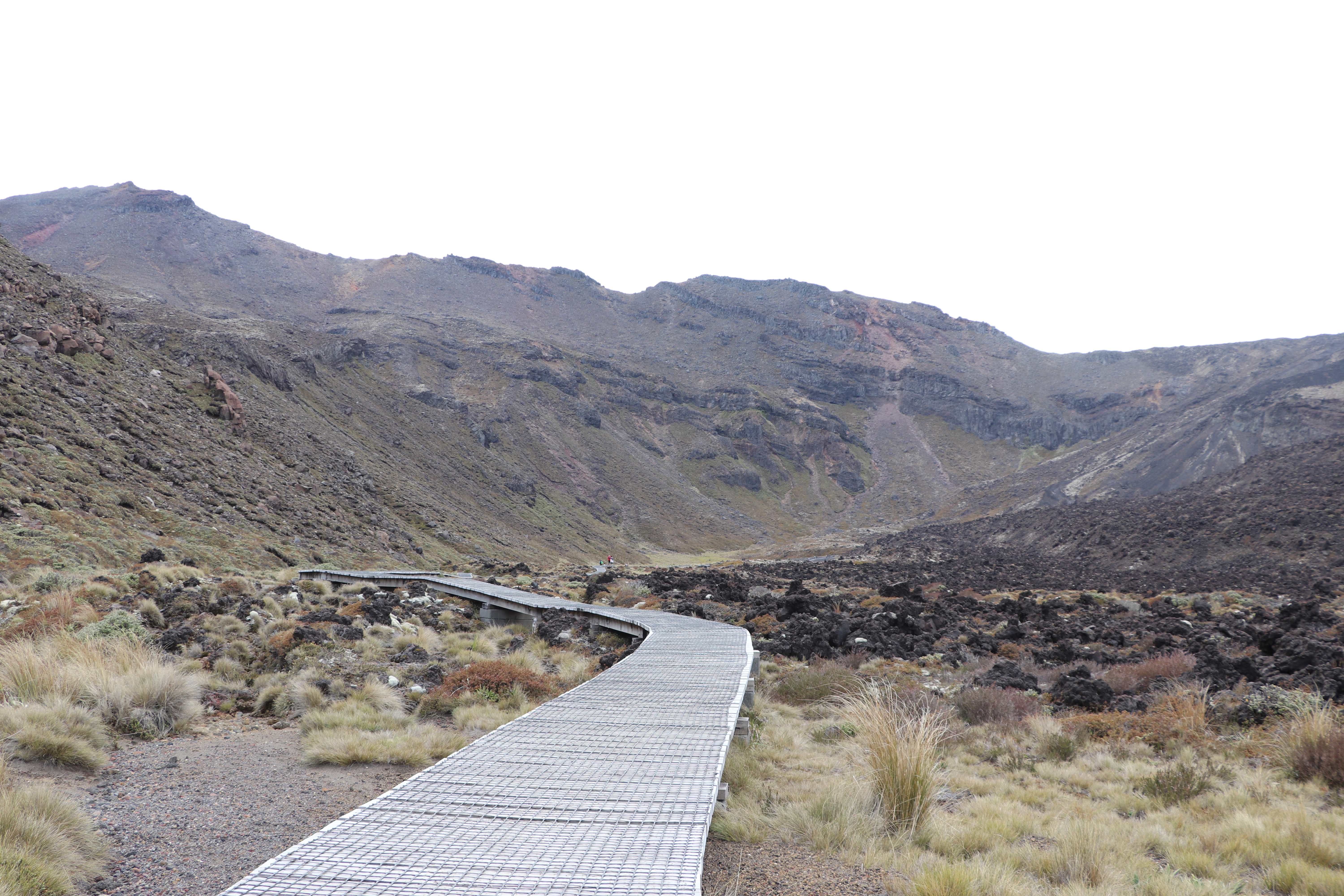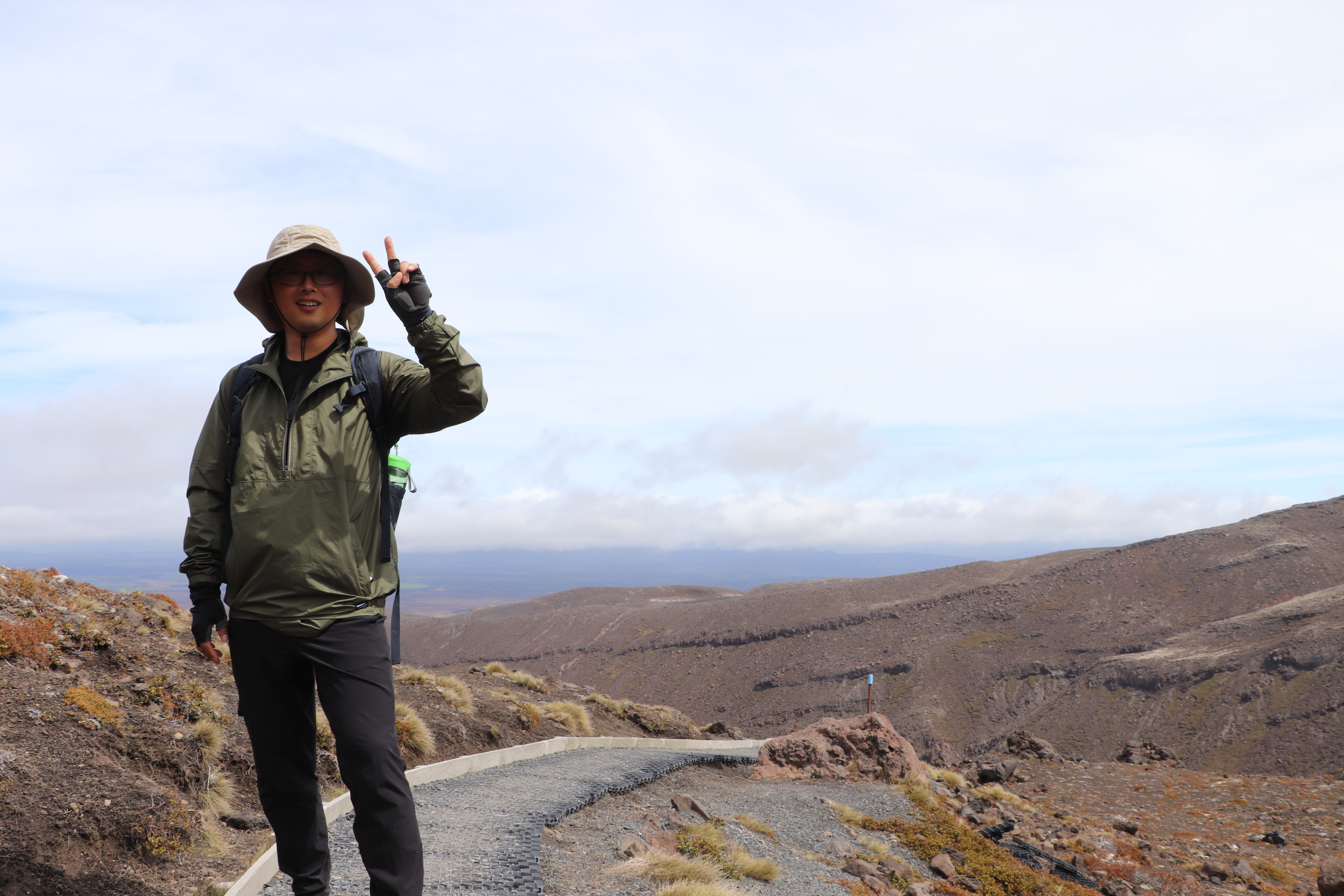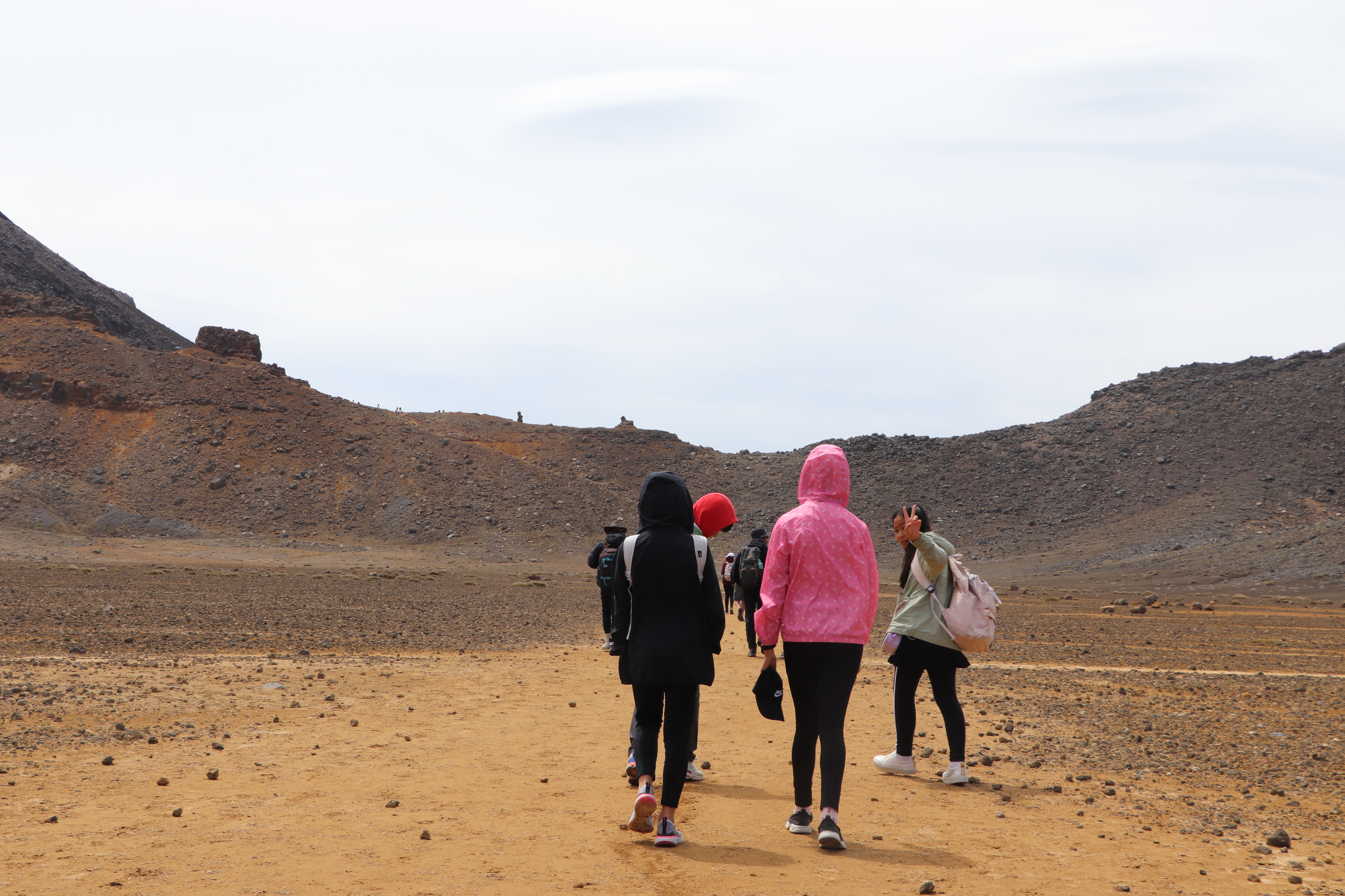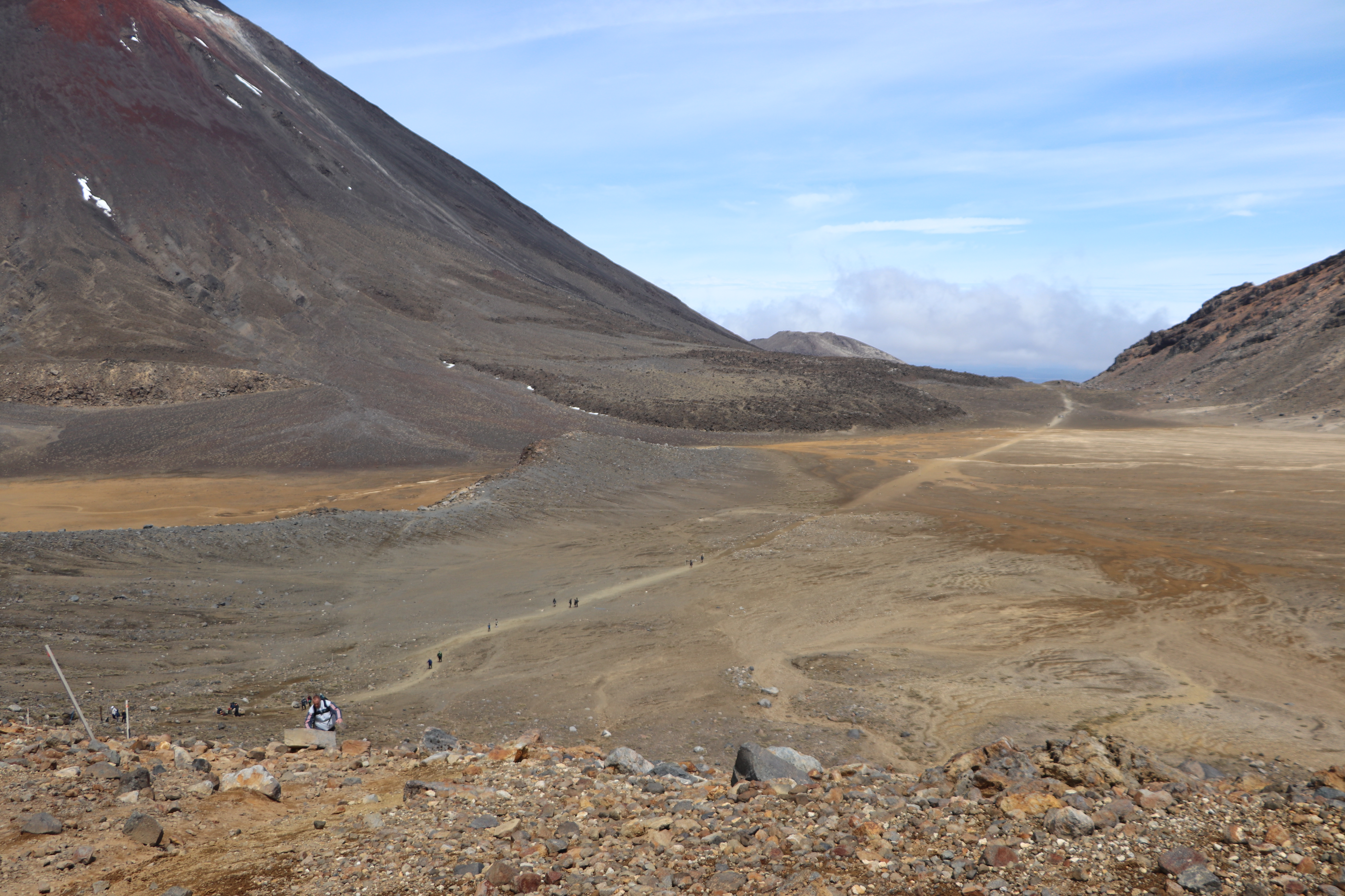 첫 1시간은 비교적 평지코스인데 정말 사람을 거의 못봤어요. 저희 팀만 있었고 저희 보다 먼저 출발한 키위들 후발대를 조금 지나치긴 했습니다. 통가리로 트래킹에 또 하나의 적은 바람인데 이 때까진 바람도 거의 없고 구름이 해를 가려 아주 편안하게 걸을 수 있었네요.