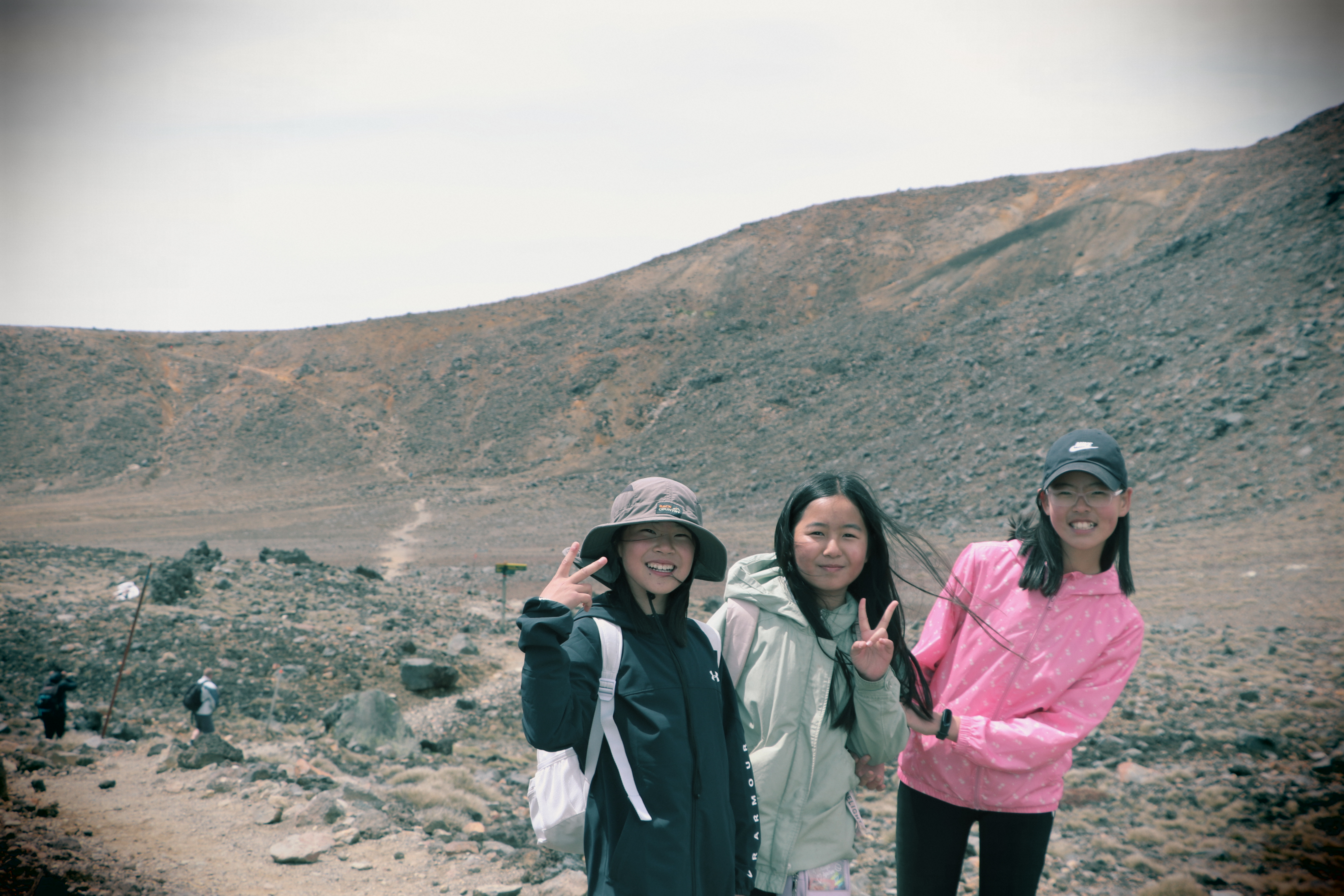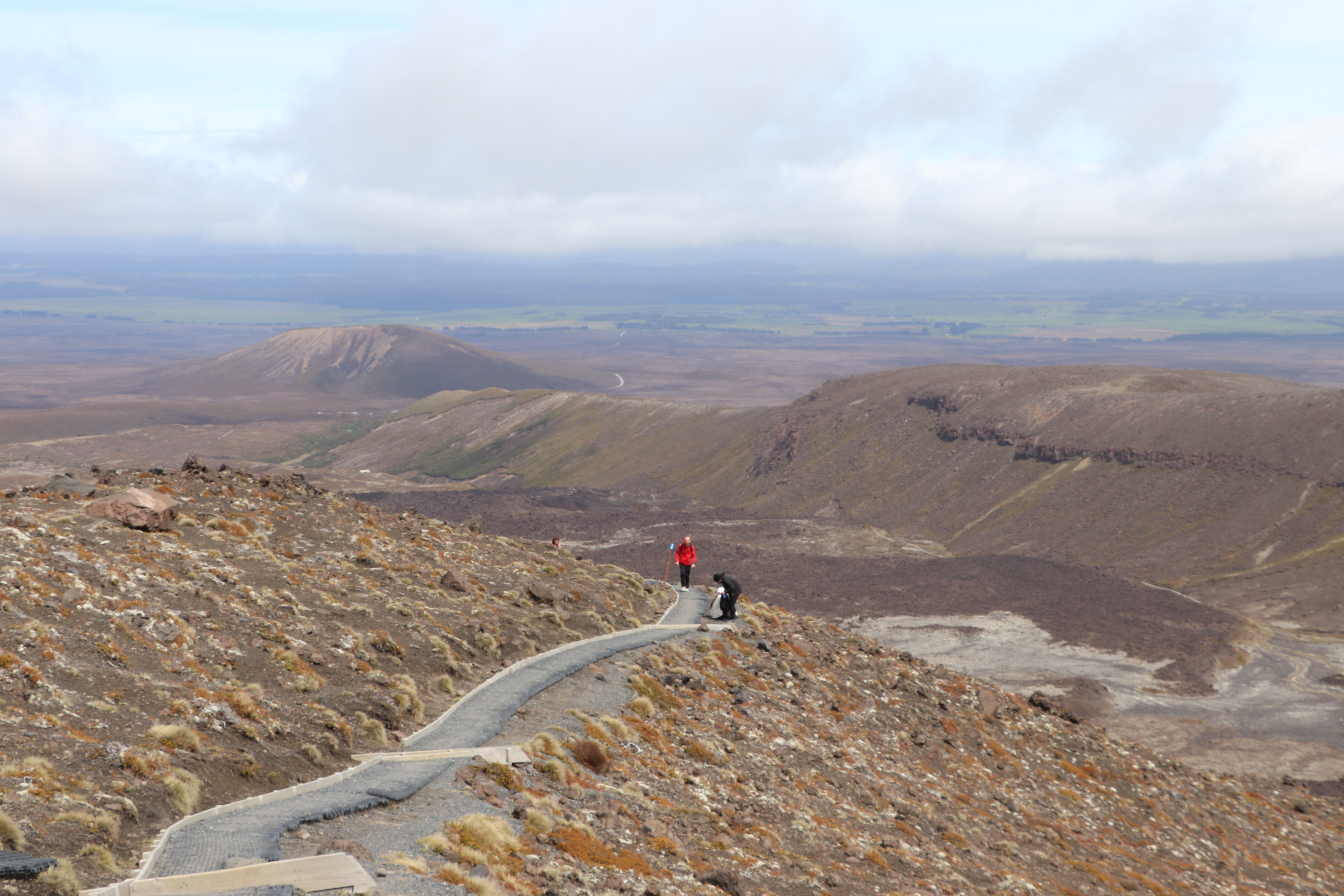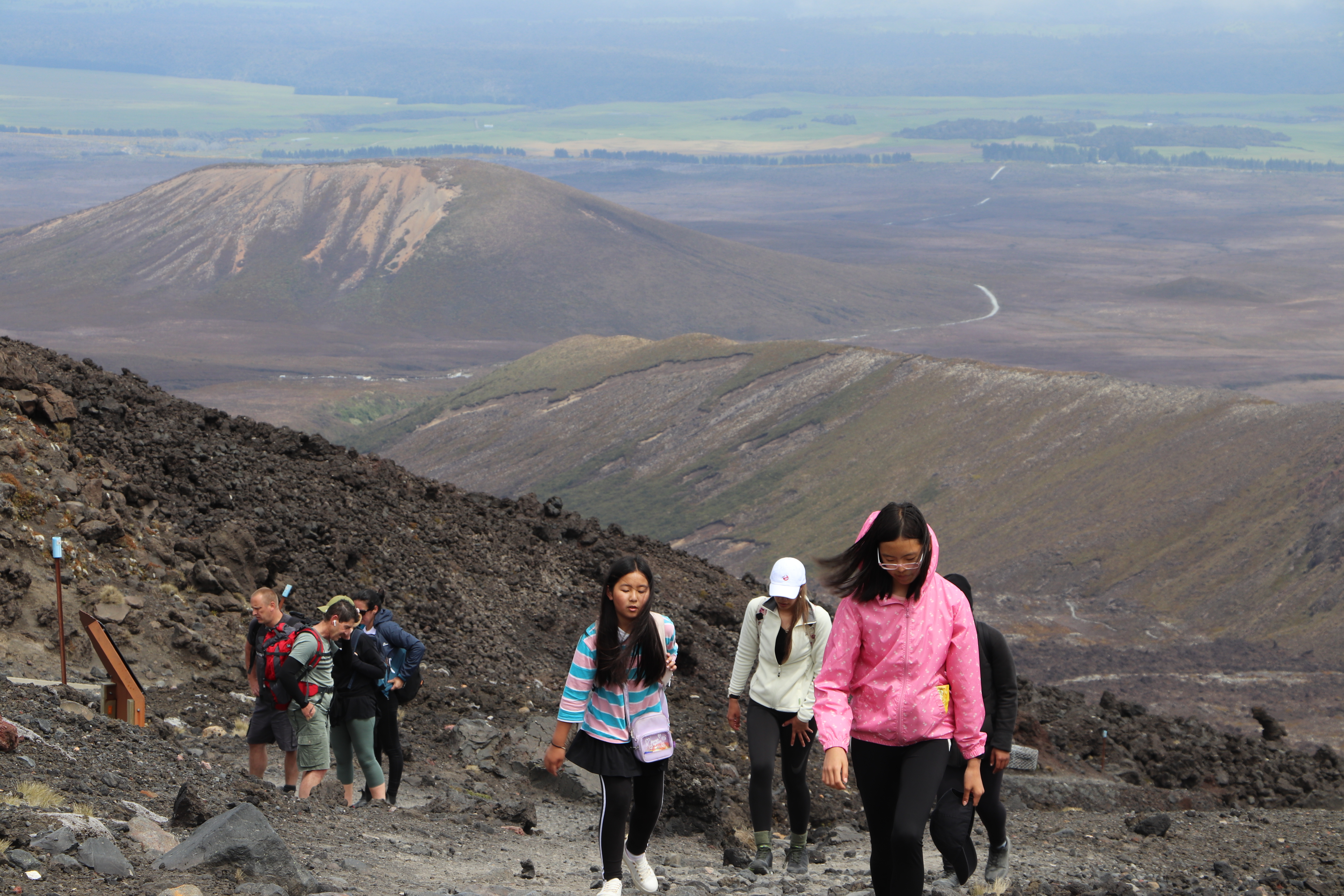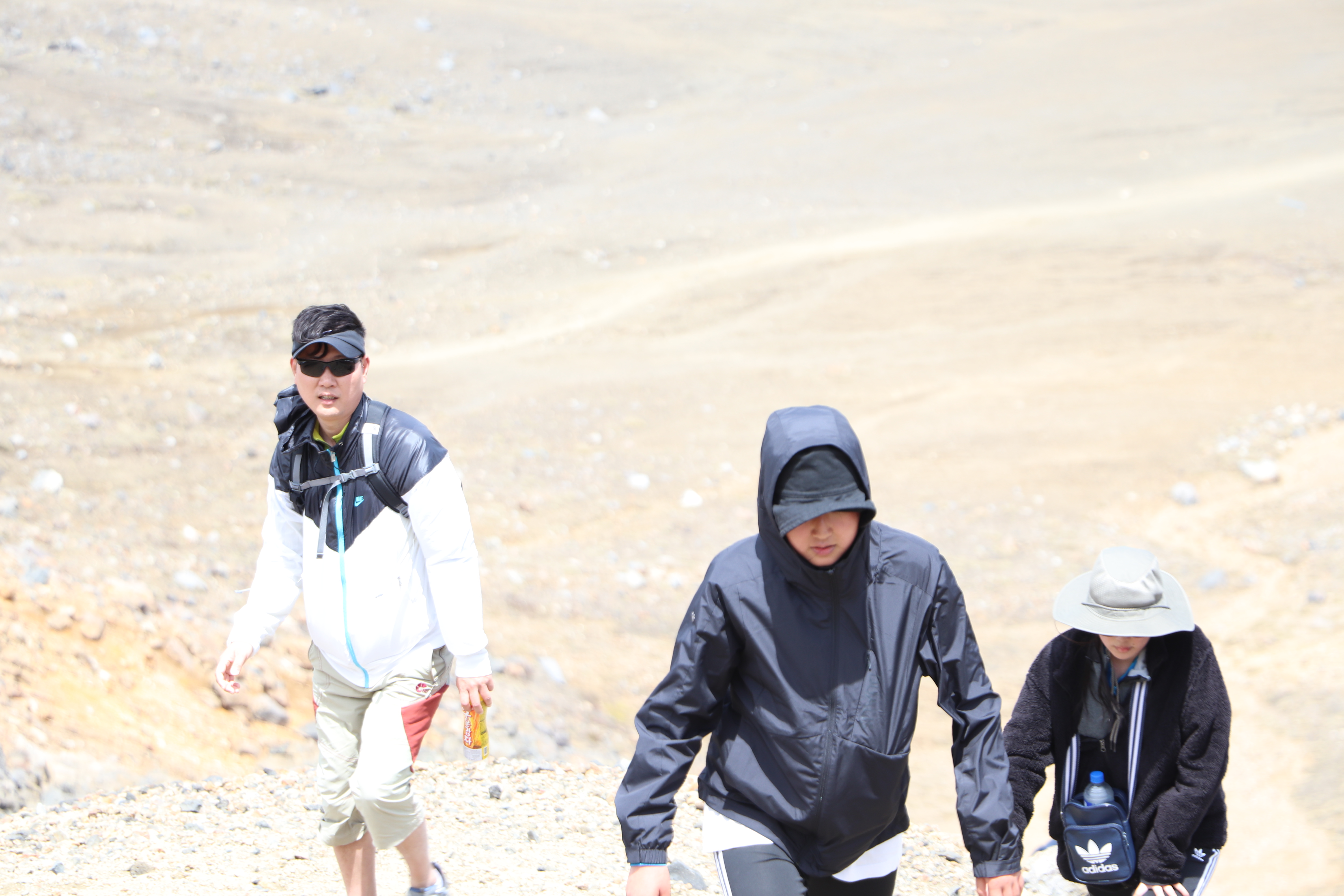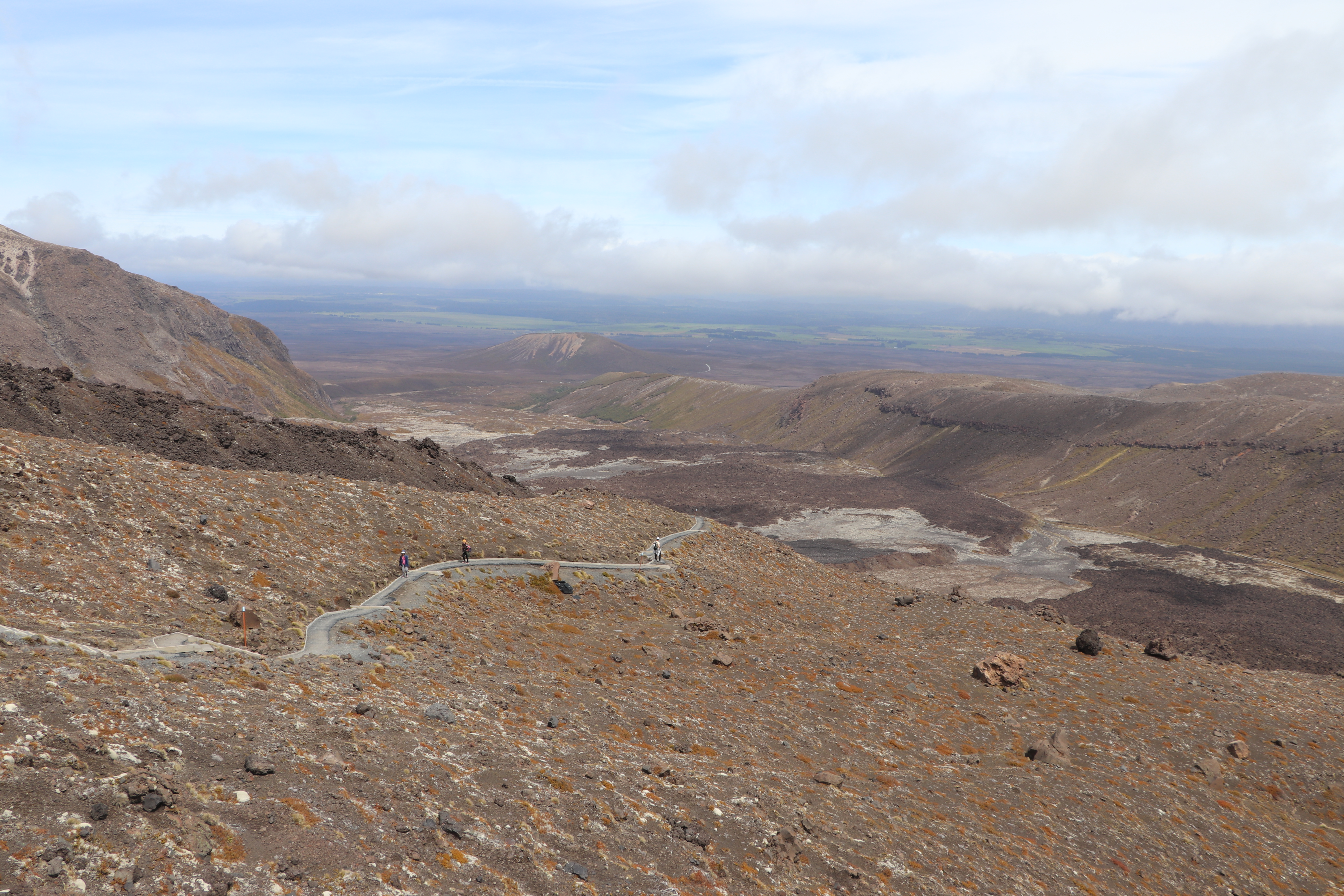 첫 1시간은 비교적 평지코스인데 정말 사람을 거의 못봤어요. 저희 팀만 있었고 저희 보다 먼저 출발한 키위들 후발대를 조금 지나치긴 했습니다. 통가리로 트래킹에 또 하나의 적은 바람인데 이 때까진 바람도 거의 없고 구름이 해를 가려 아주 편안하게 걸을 수 있었네요.