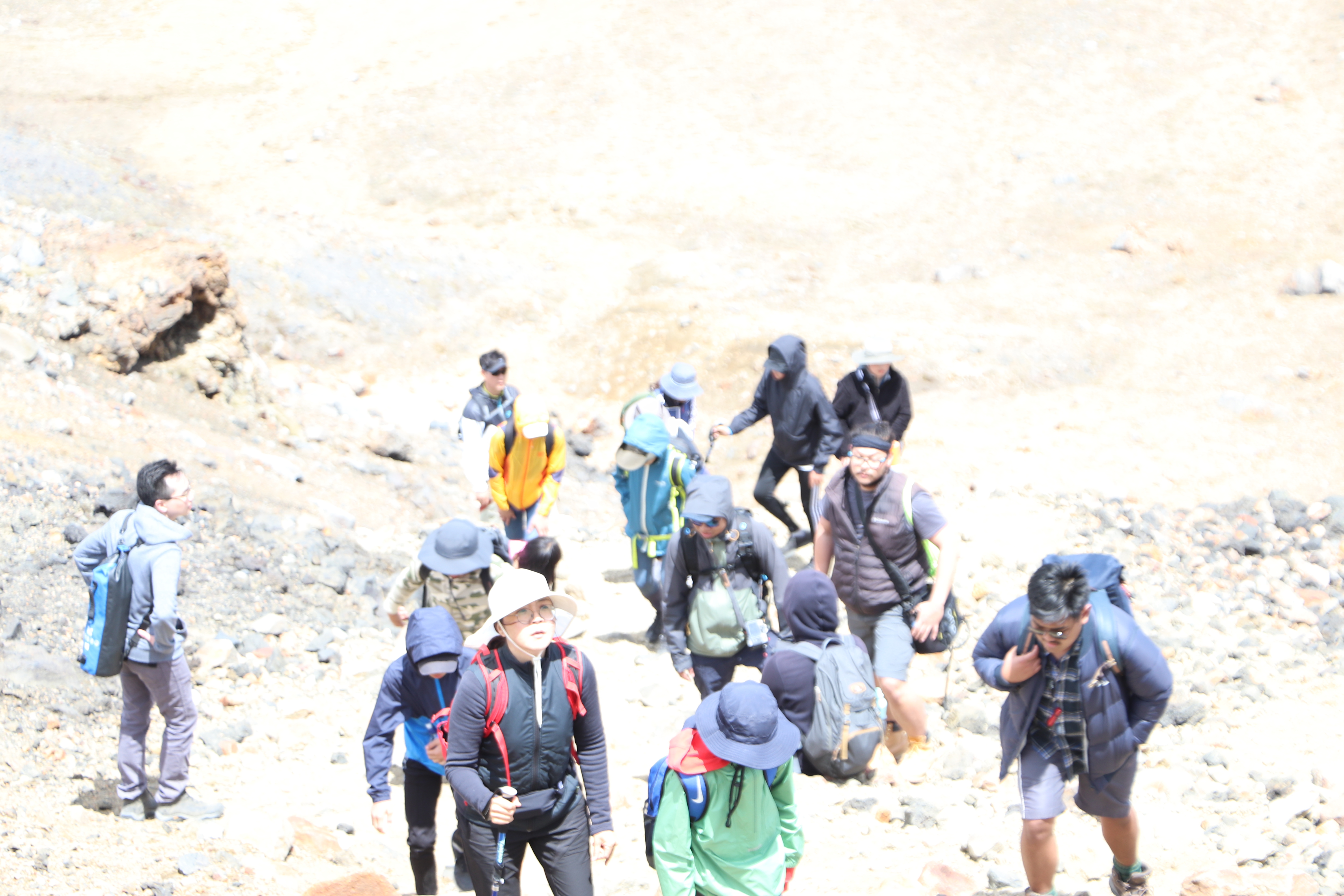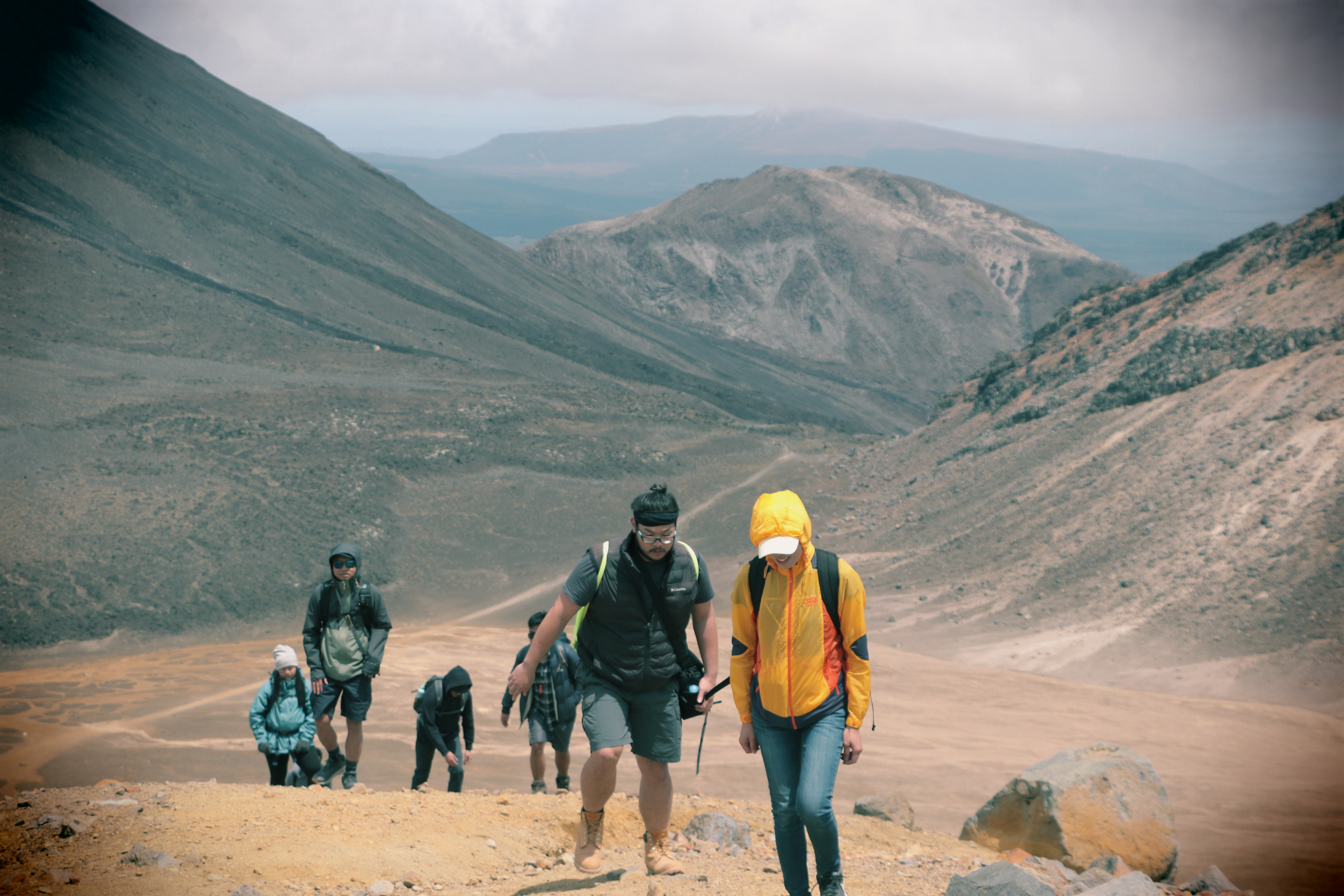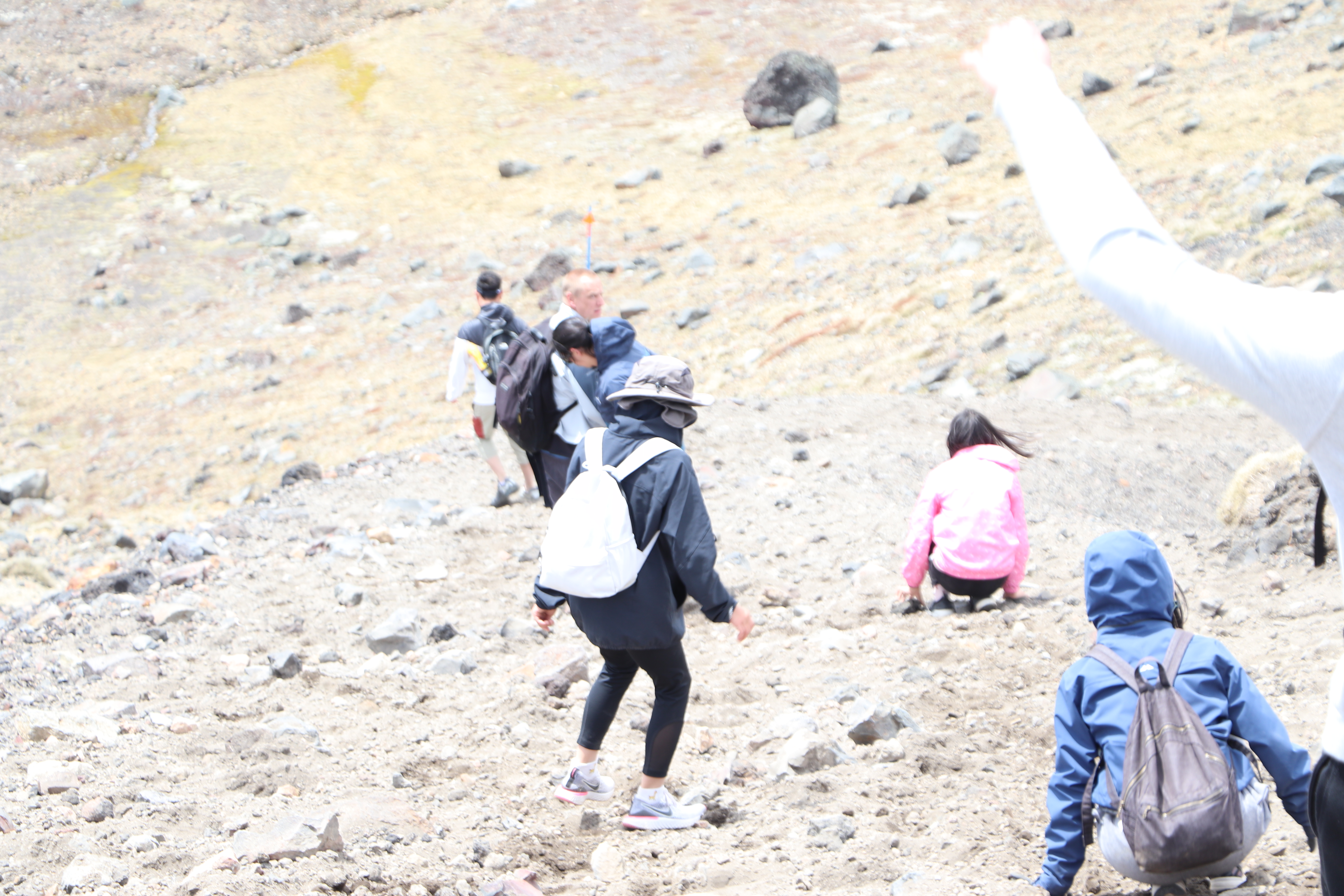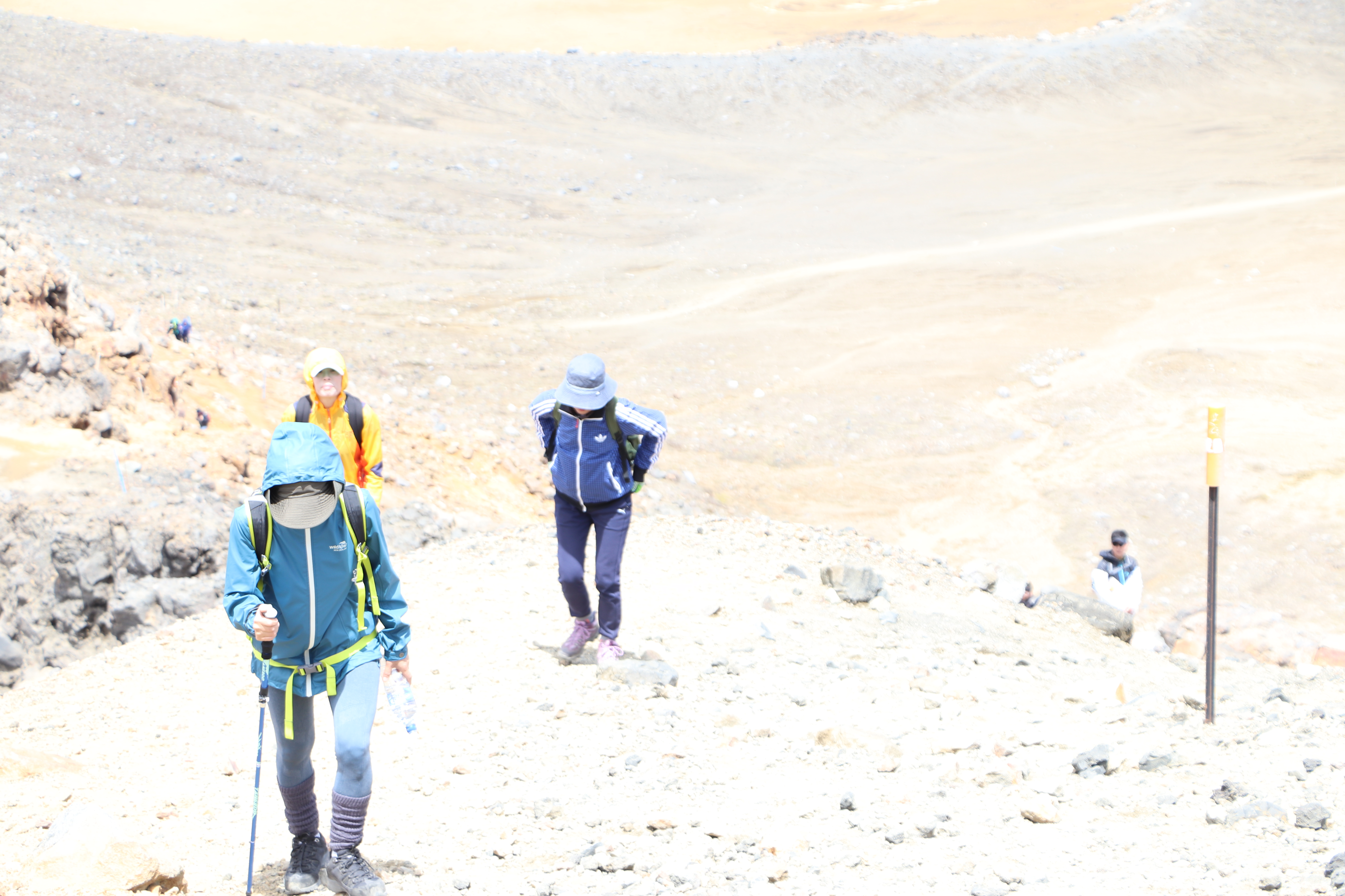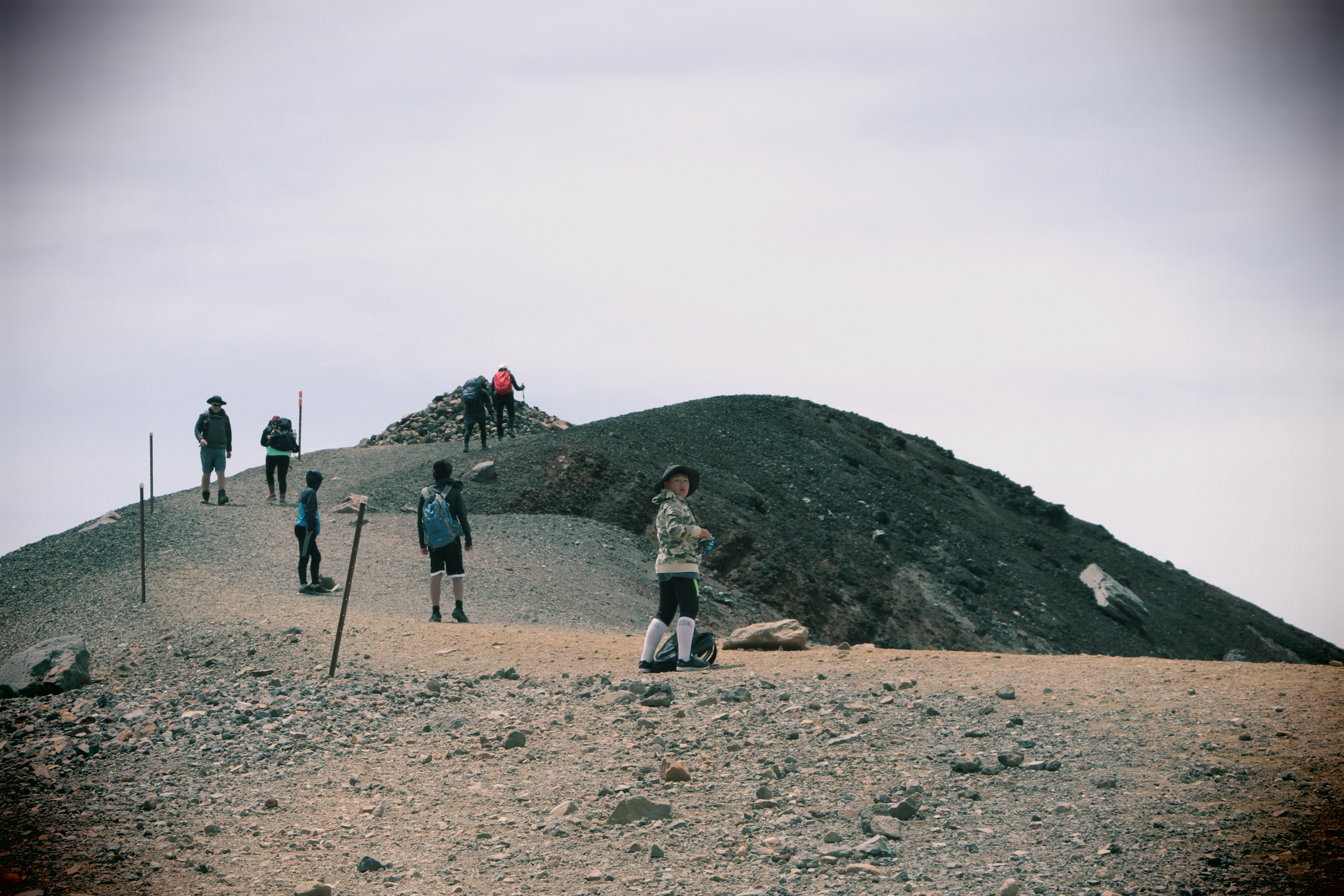 첫 1시간은 비교적 평지코스인데 정말 사람을 거의 못봤어요. 저희 팀만 있었고 저희 보다 먼저 출발한 키위들 후발대를 조금 지나치긴 했습니다. 통가리로 트래킹에 또 하나의 적은 바람인데 이 때까진 바람도 거의 없고 구름이 해를 가려 아주 편안하게 걸을 수 있었네요.